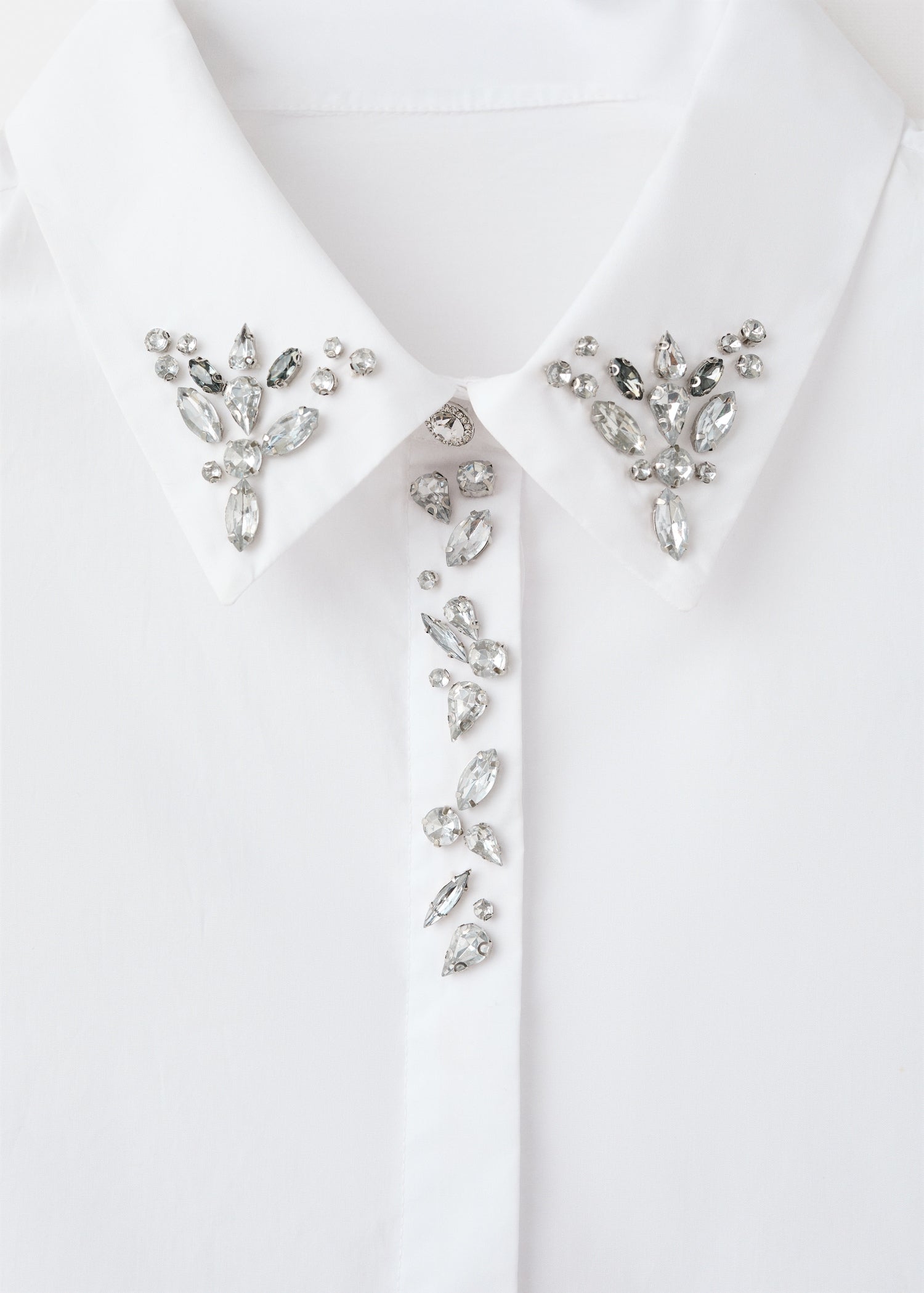 Cotton poplin. Straight Design. Shirt Collar. Decorative crystals details. Long sleeves with buttoned cuffs. Concealed button fastening. This garment is part of our party and event collection, designed to elevate your looks for special occasions.