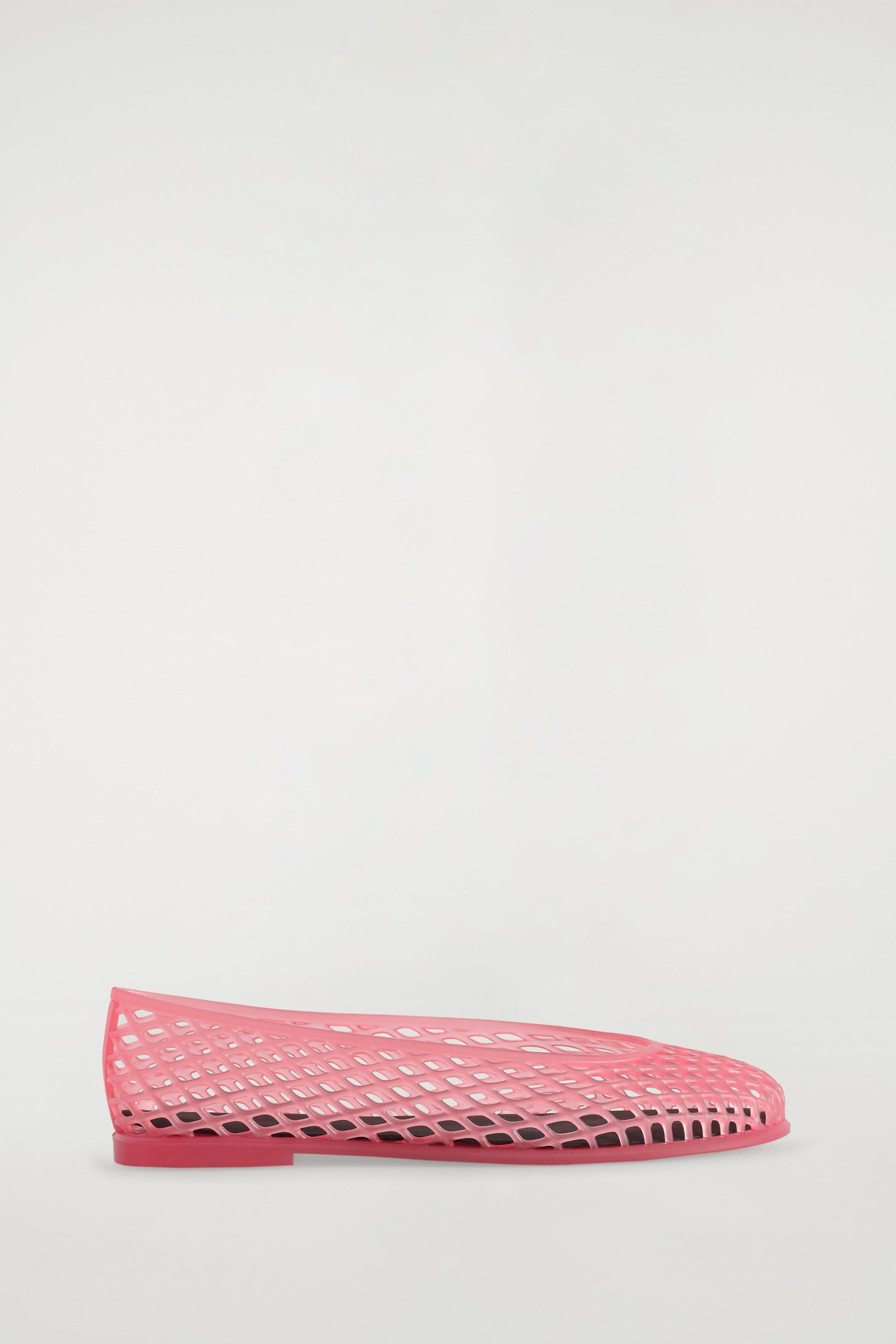 For Spring Summer 2025, the womenswear team propose a playful take on the classic ballet flats. Upper 100% Thermoplastic rubber. Sole 100% Leather.