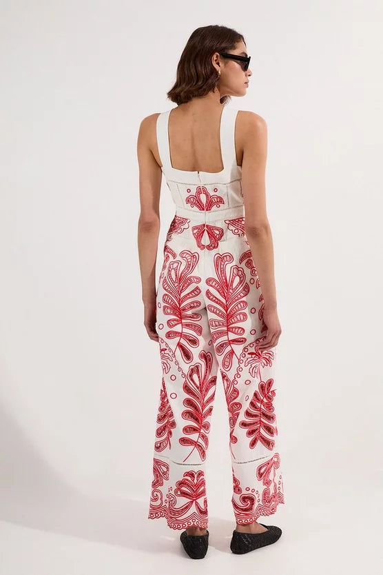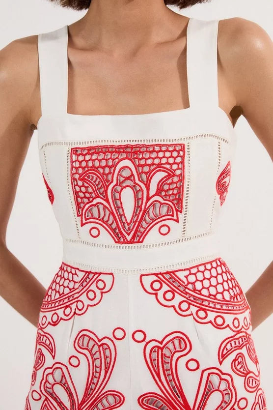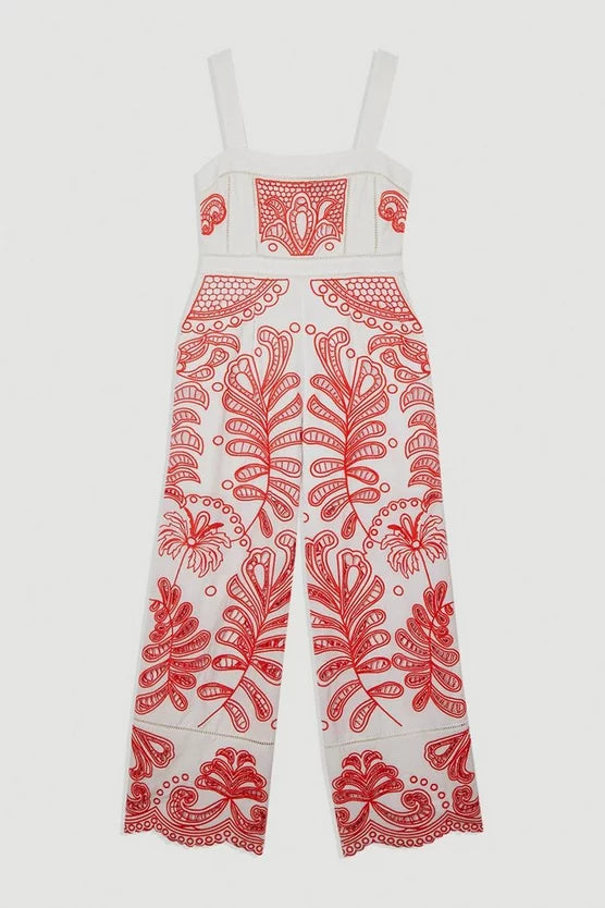 Cutwork Embroidered Wide Leg Woven Jumpsuit