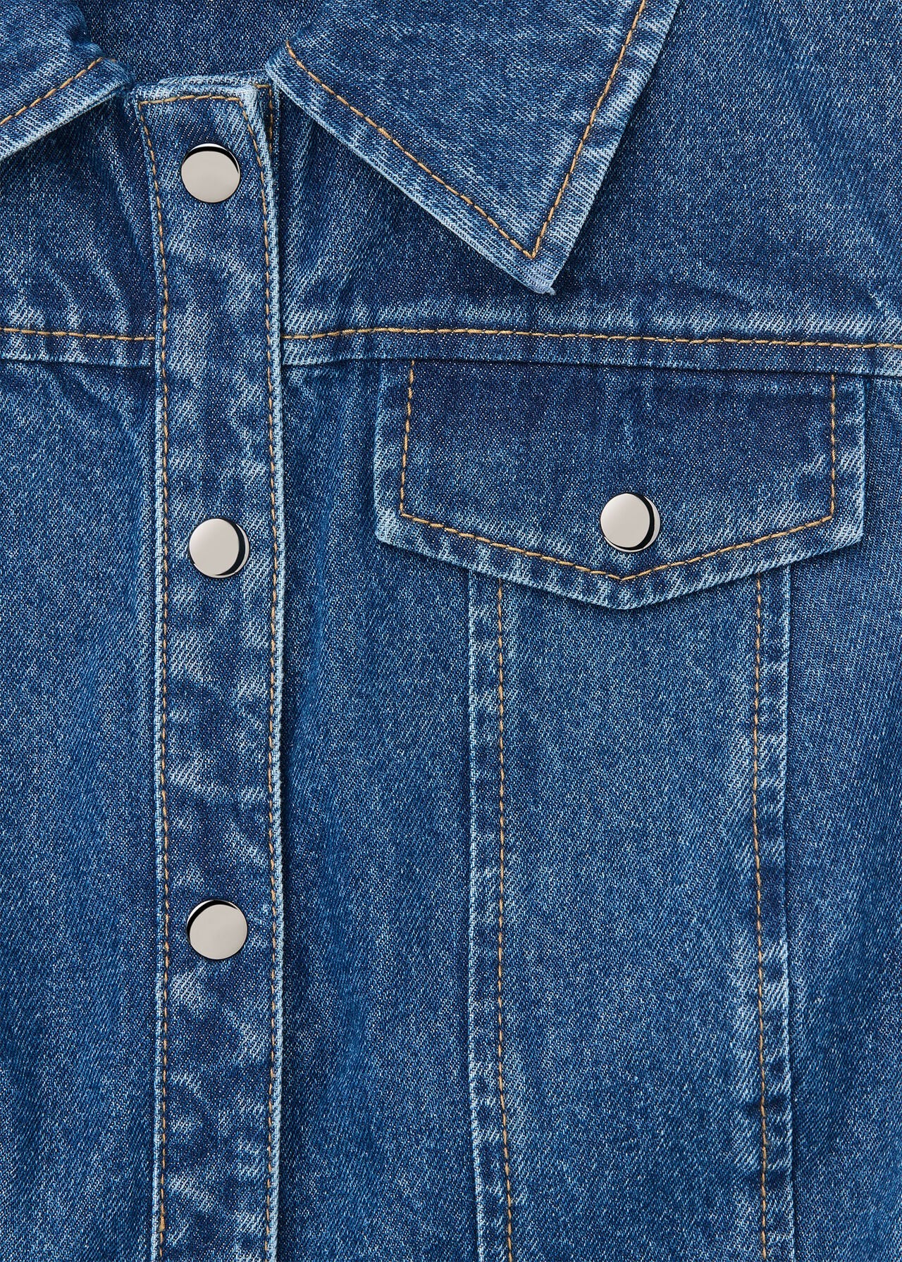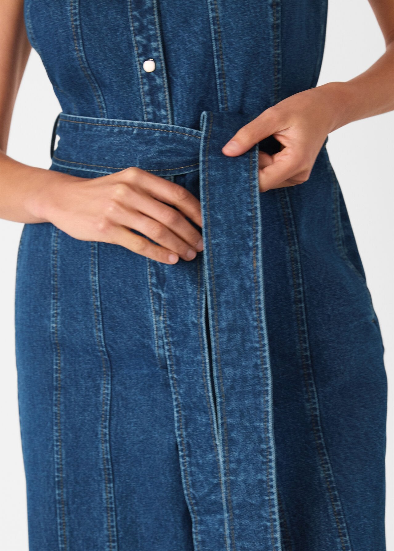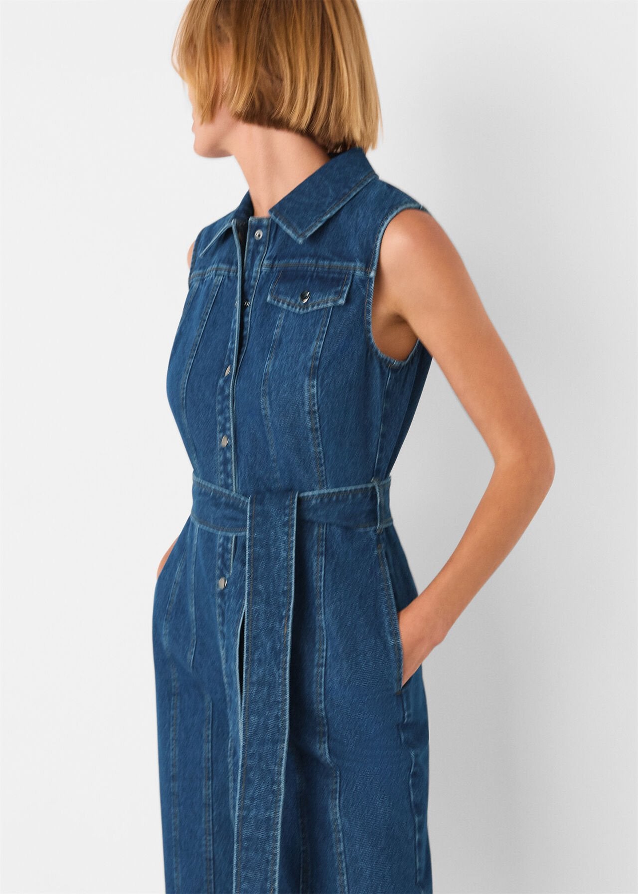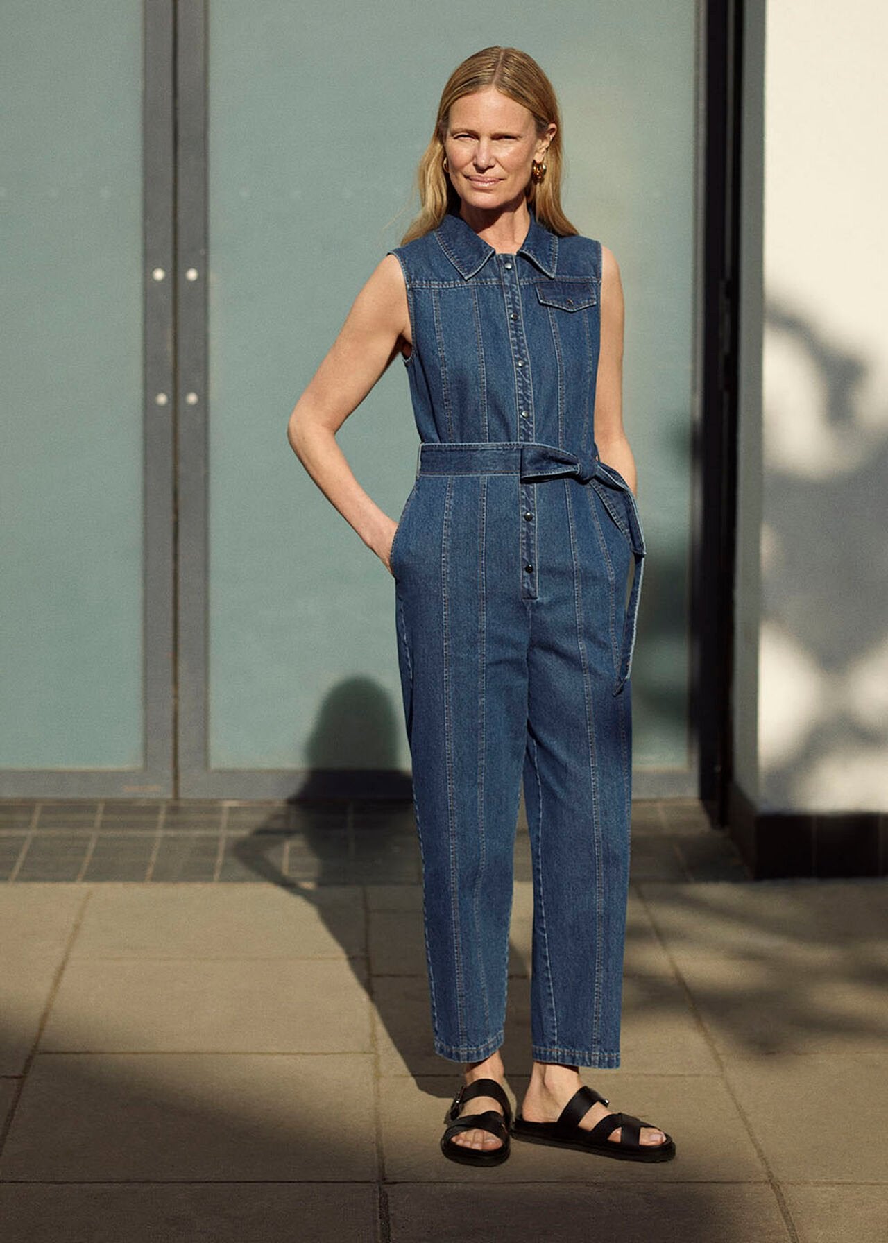 Endlessly versatile, our Barrel Leg Jumpsuit is your all-in-one outfit solution. Its cut to our signature barrel leg shape, fitting looser through the thigh and cropped at the ankle, in an effortless shade of mid-wash denim. The sleeveless silhouette, collar and belted waist further the modern look, making it your go-to choice for laid-back chic this summer.