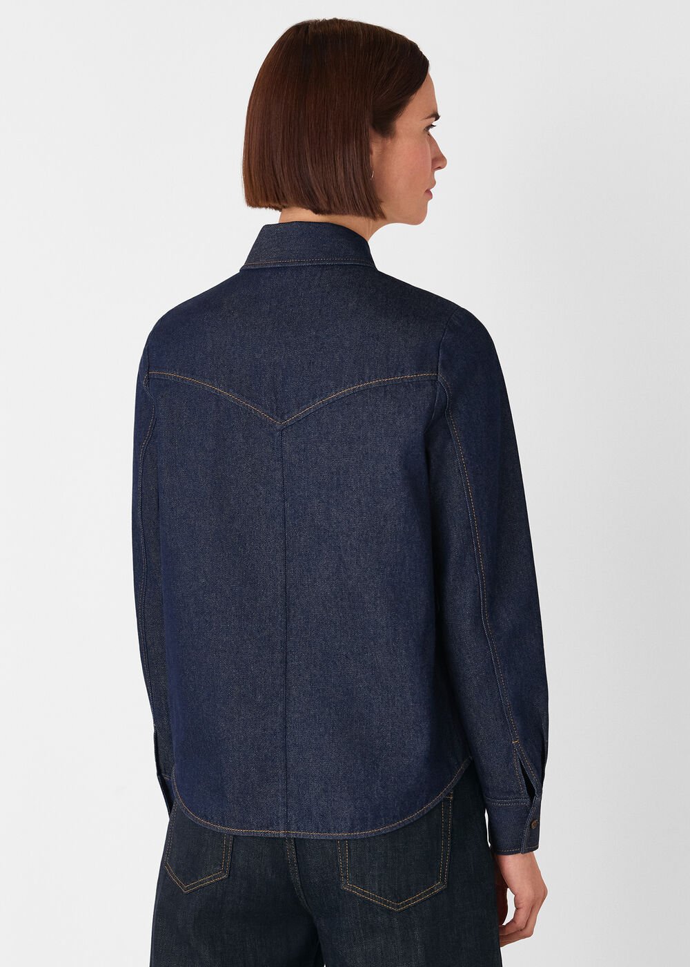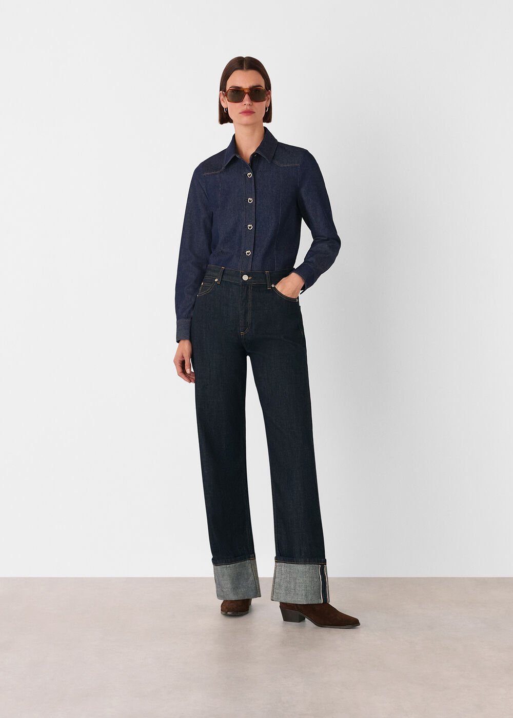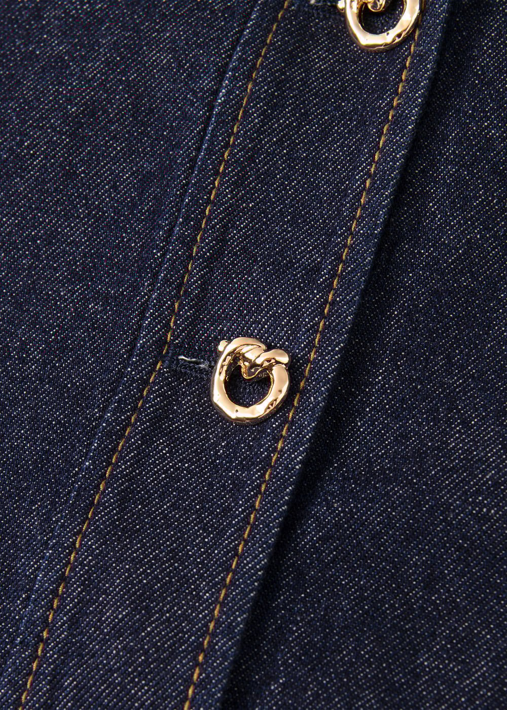 Our Button Detail Cotton Shirt brings a contemporary twist to classic tailoring, reimagined in rich dark denim for a confident, modern feel. Its cut with a straight silhouette and defined by distinctive gold-toned buttons, a sharp collar and contrast topstitching that frames the structure beautifully. The result is a seamless blend of classic and modern perfect for elevating everyday looks or smarter edits with ease.