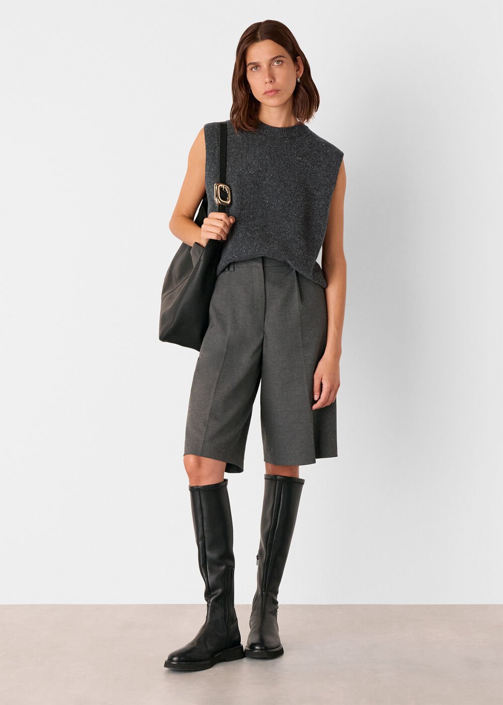 This season, our core tanks evolve with new textures and tones. The latest our Wool Fleck Sleeveless Tank in dark grey features an all-over flecked finish. Its sleeveless silhouette makes it easy to wear as it is or layered over tees and long sleeves. Warm, versatile and thoughtfully detailed, its a piece you'll reach for again and again as the temperatures drop.