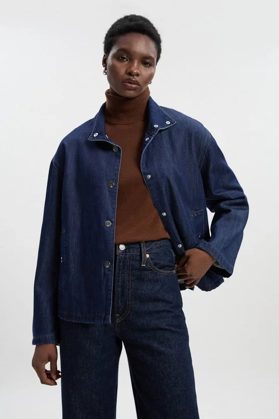 Denim Funnel Neck Jacket