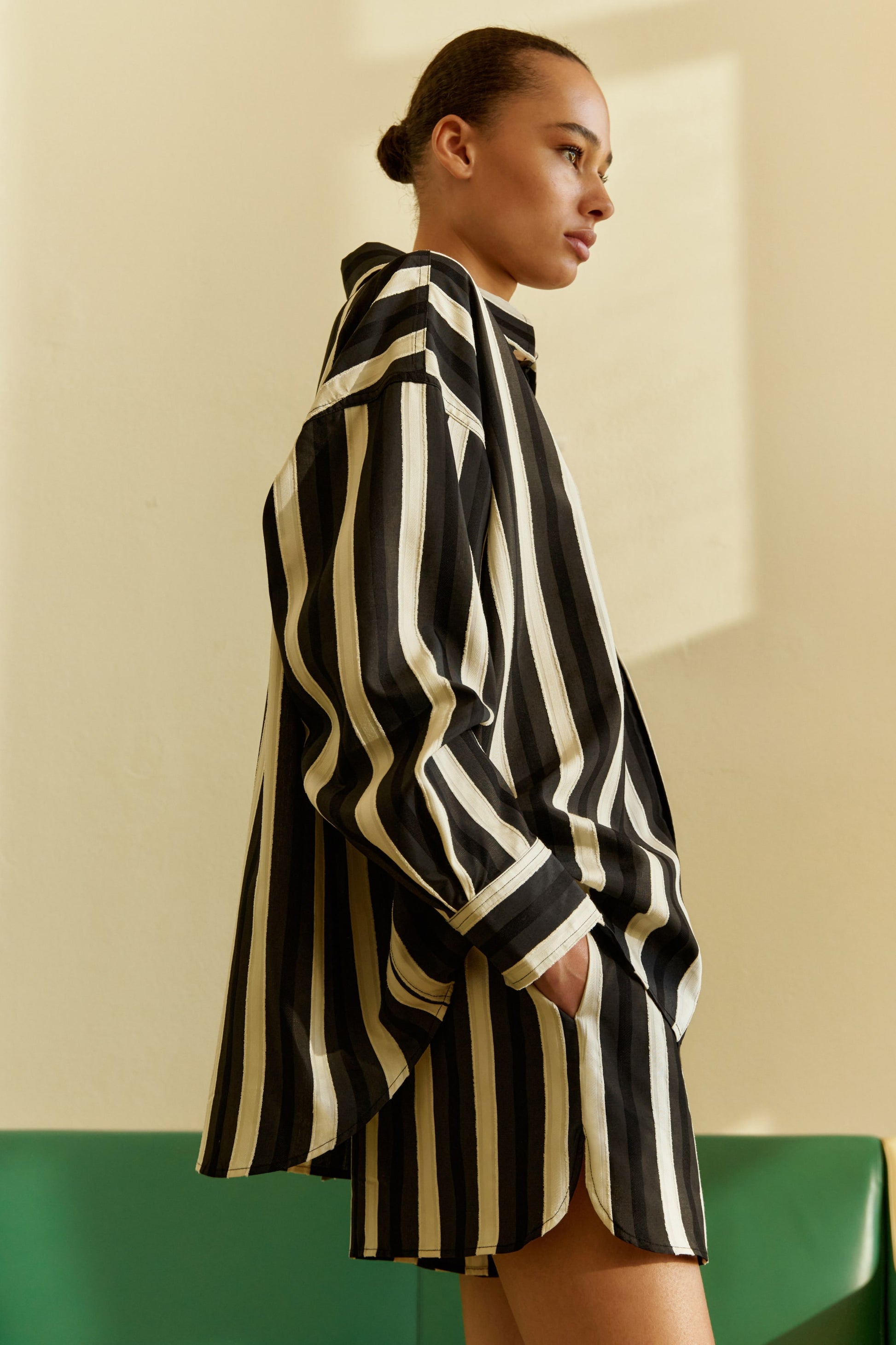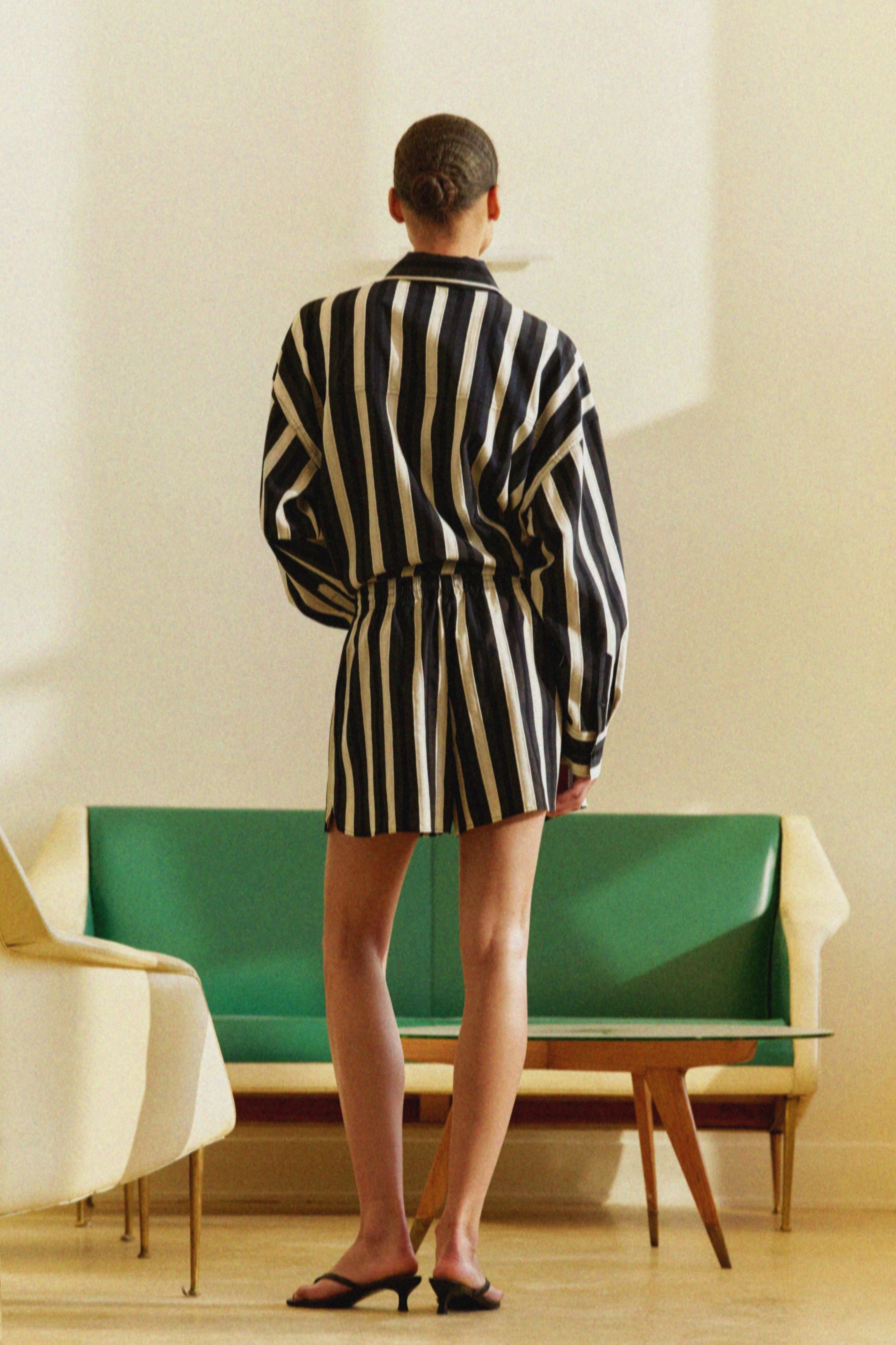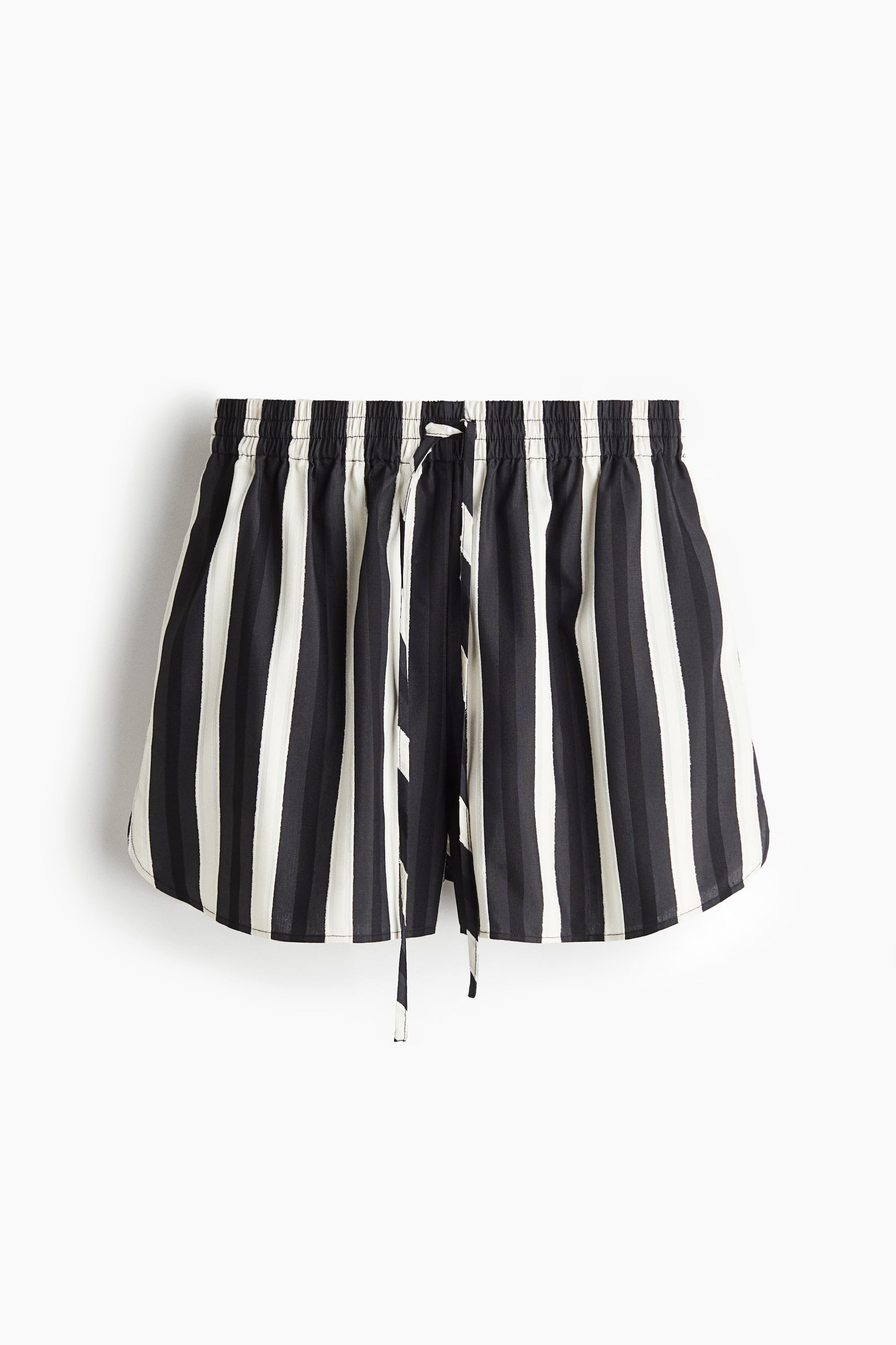 Loose-fit shorts in a dobby weave featuring a high waist with elasticated smocking and a drawstring. Discreet side pockets and curved hems.