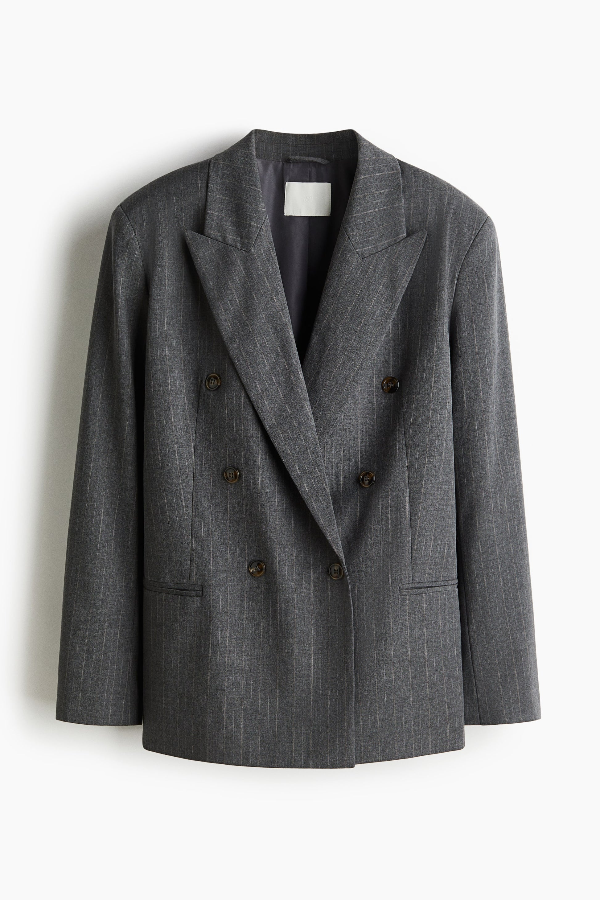Double-breasted blazer in twill with peak lapels and buttons at the front. Shoulder pads and jetted front pockets. Lined.