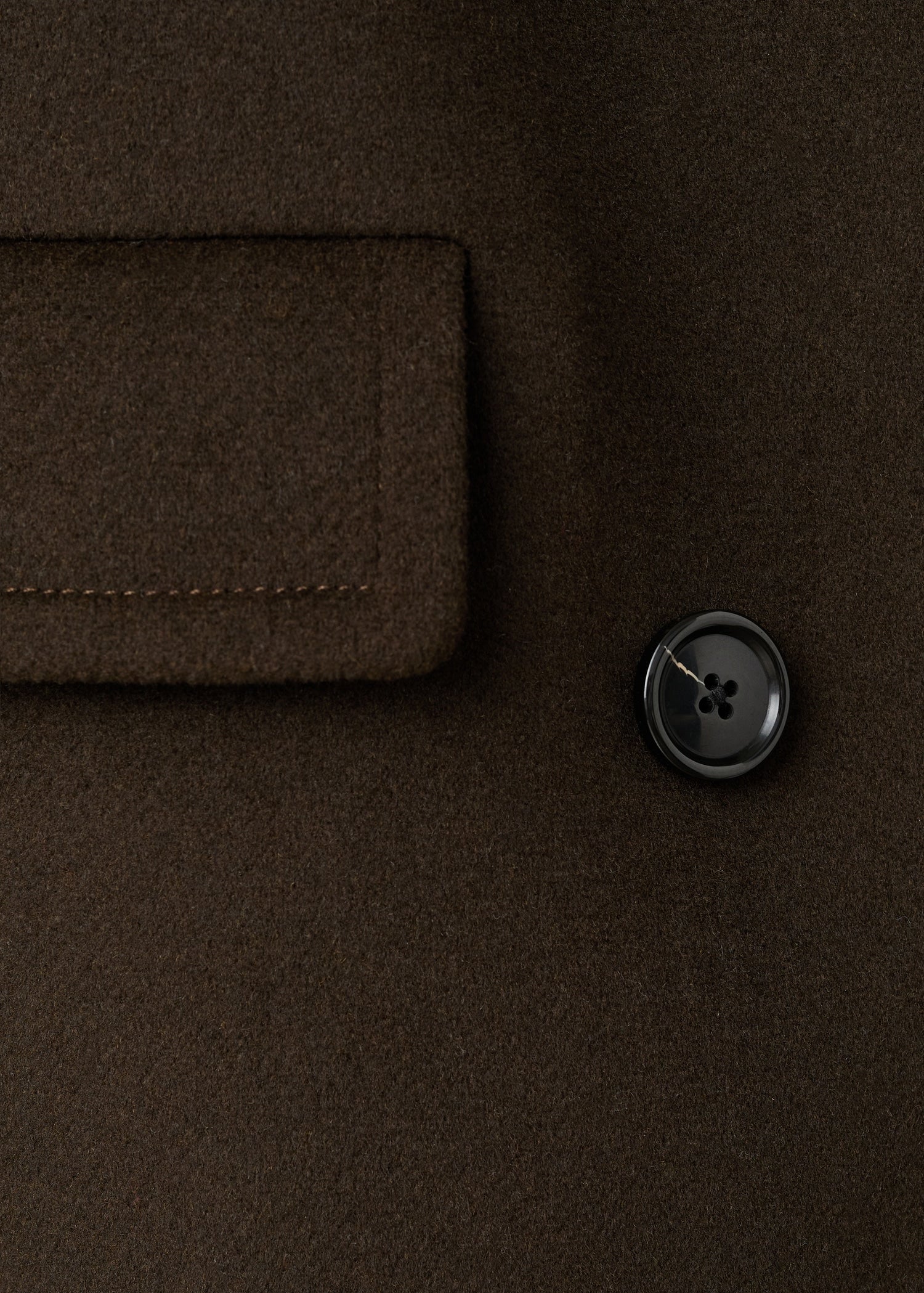 Crafted from a wool blend fabric, this coat features a straight design with a V-neck and notched lapels. It has long sleeves with buttoned cuffs, two front flap pockets and a double-breasted fastening. Lined interior. Plus Size available