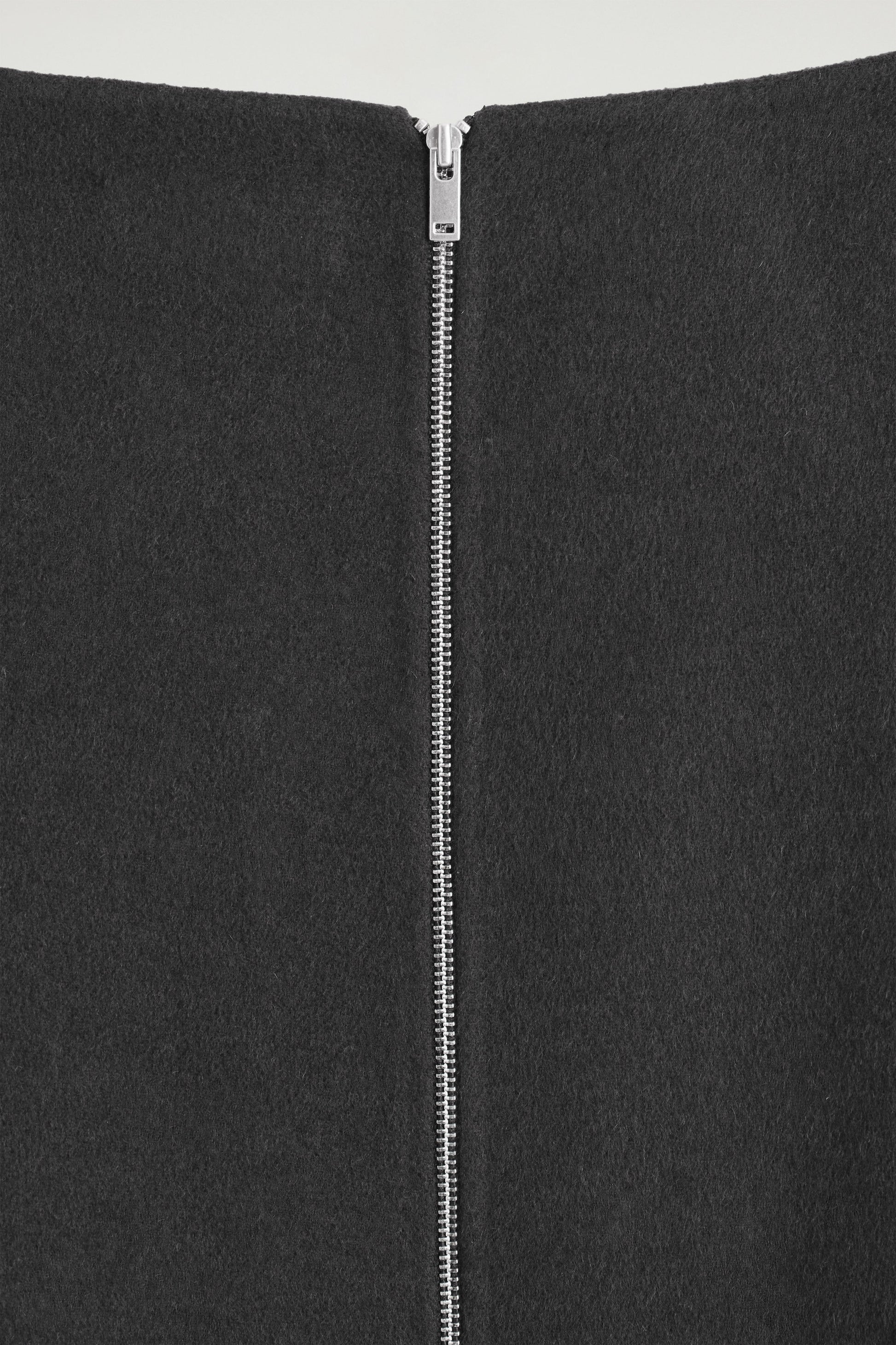 Autumn Winter 2025 takes the modern wardrobe to new heights: the epitome of quiet confidence. This season's capsule is grounded by soft yet sculptural silhouettes like this refined top. Rendered in a steel-grey tone, it's crafted from an RWS wool blend that's double-faced for a premium finish and designed with a wide V-neckline and a silver-tone zip at the back. Style it as a coord with the matching skirt.