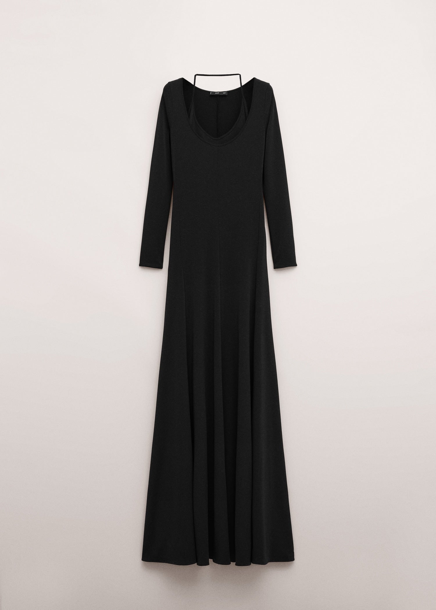 Fine-knit fabric. Long design. A-line design. V-neckline. Combined collar. Long sleeves. No Fastening. Selection Collection.