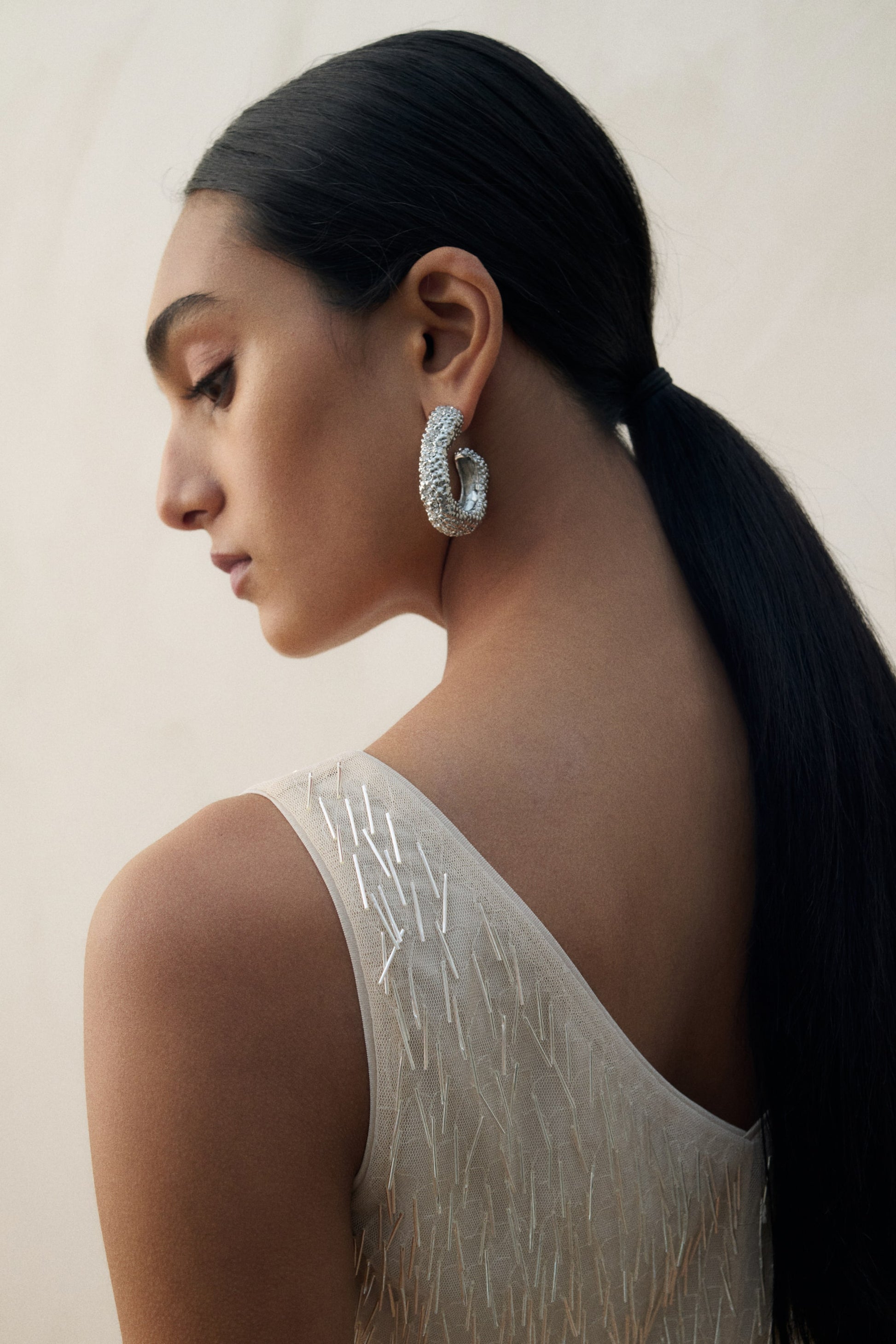 Cropped, embellished top in jersey. Sleeveless design with a boat neckline and a V-shaped back. Lined.