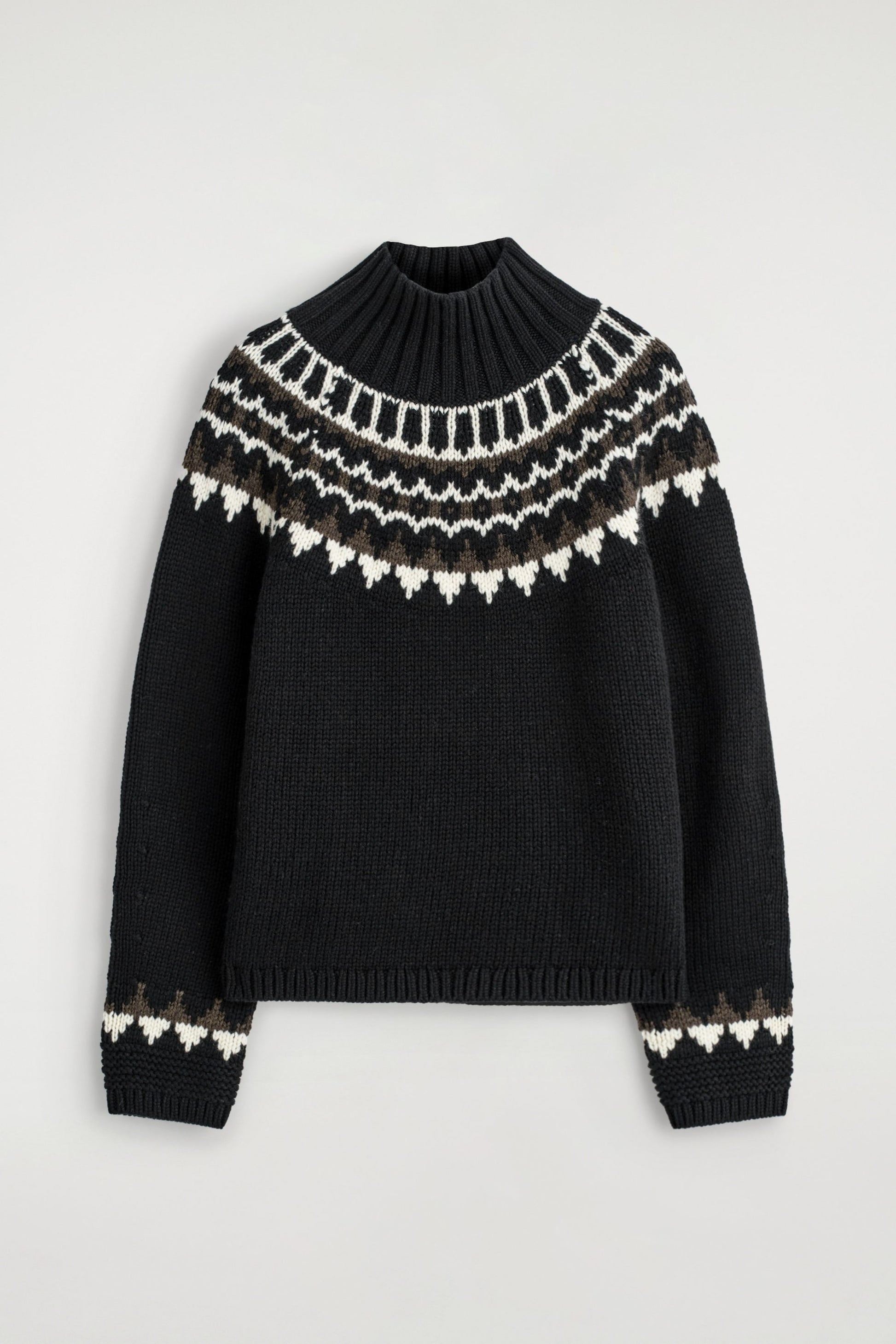 This season, the womenswear team reimagine heritage codes through a modern lens. Offered in an enduring black tone, this jumper is made from merino wool with hints of cashmere for a luxurously soft hand feel and patterned with a refined fairisle motif. The funnel neck, cuffs and hem are finished with ribbed trims.
