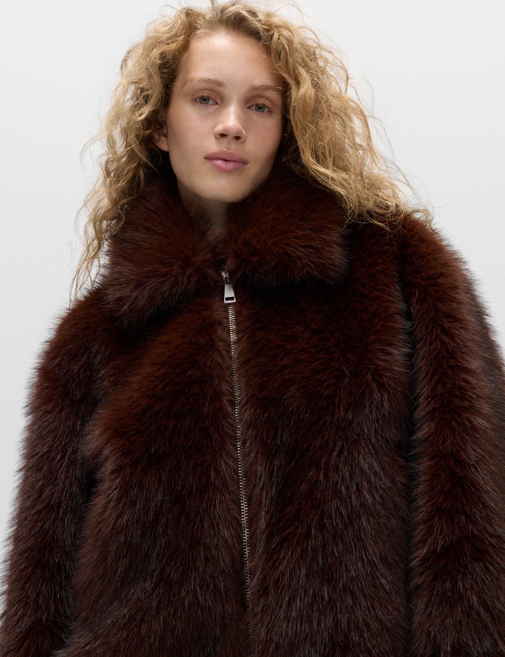 Feel and look stylish in this chic aviator coat, crafted from faux fur to get you all cosy. It's designed in a regular fit, with a snug collared neckline and a secure zip fastening. Two front pockets are perfect for keeping your hands toasty.