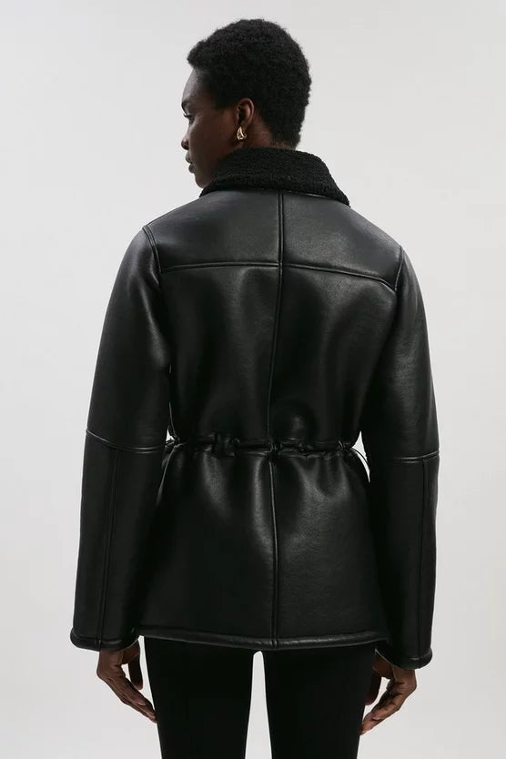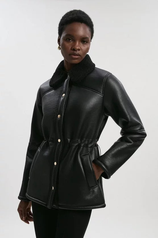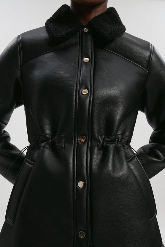 Faux Fur Collar Waisted Coat