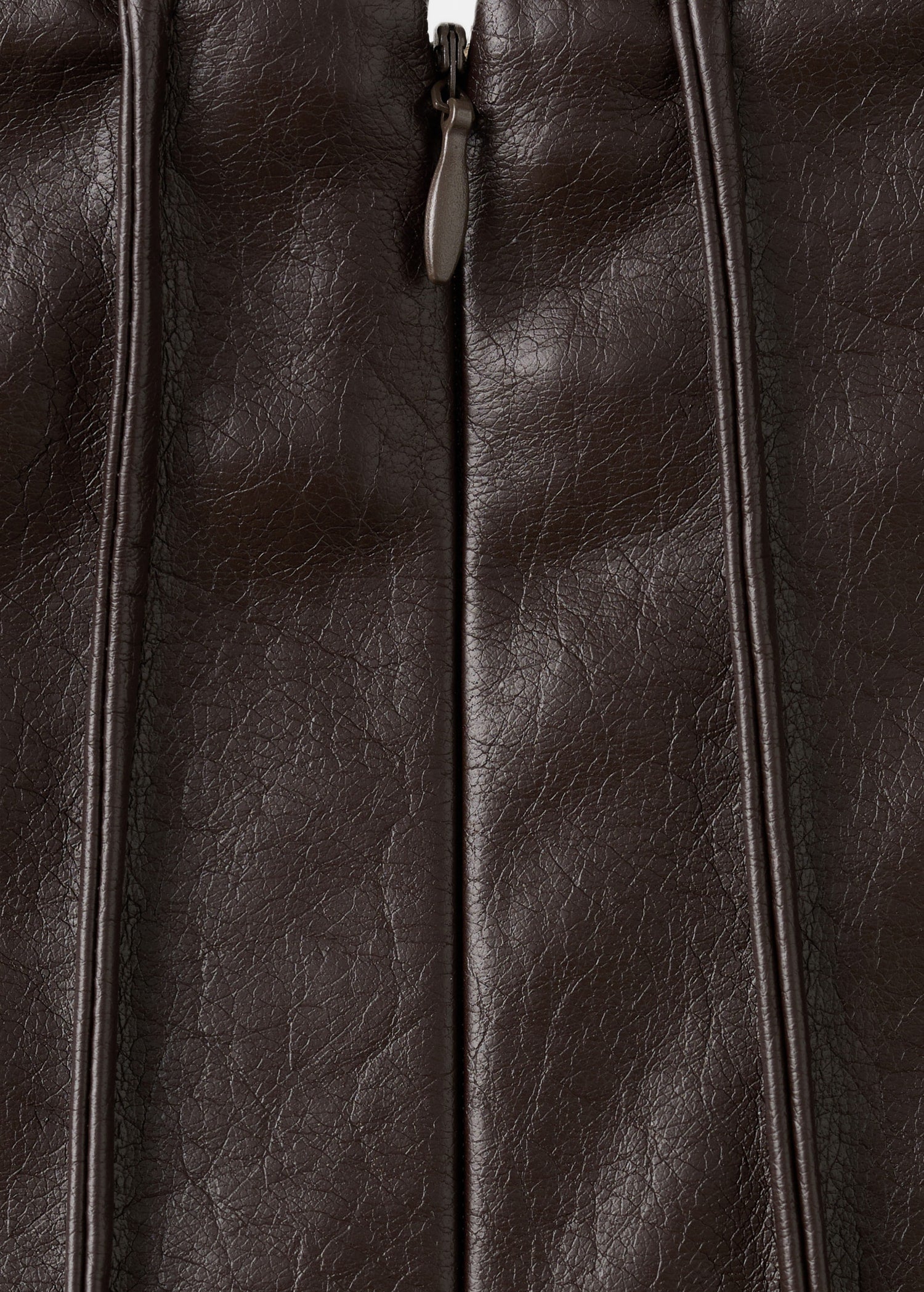 Faux leather. Midi design. High waist. Godet detail. Zip fastening on the back section. Inner lining.