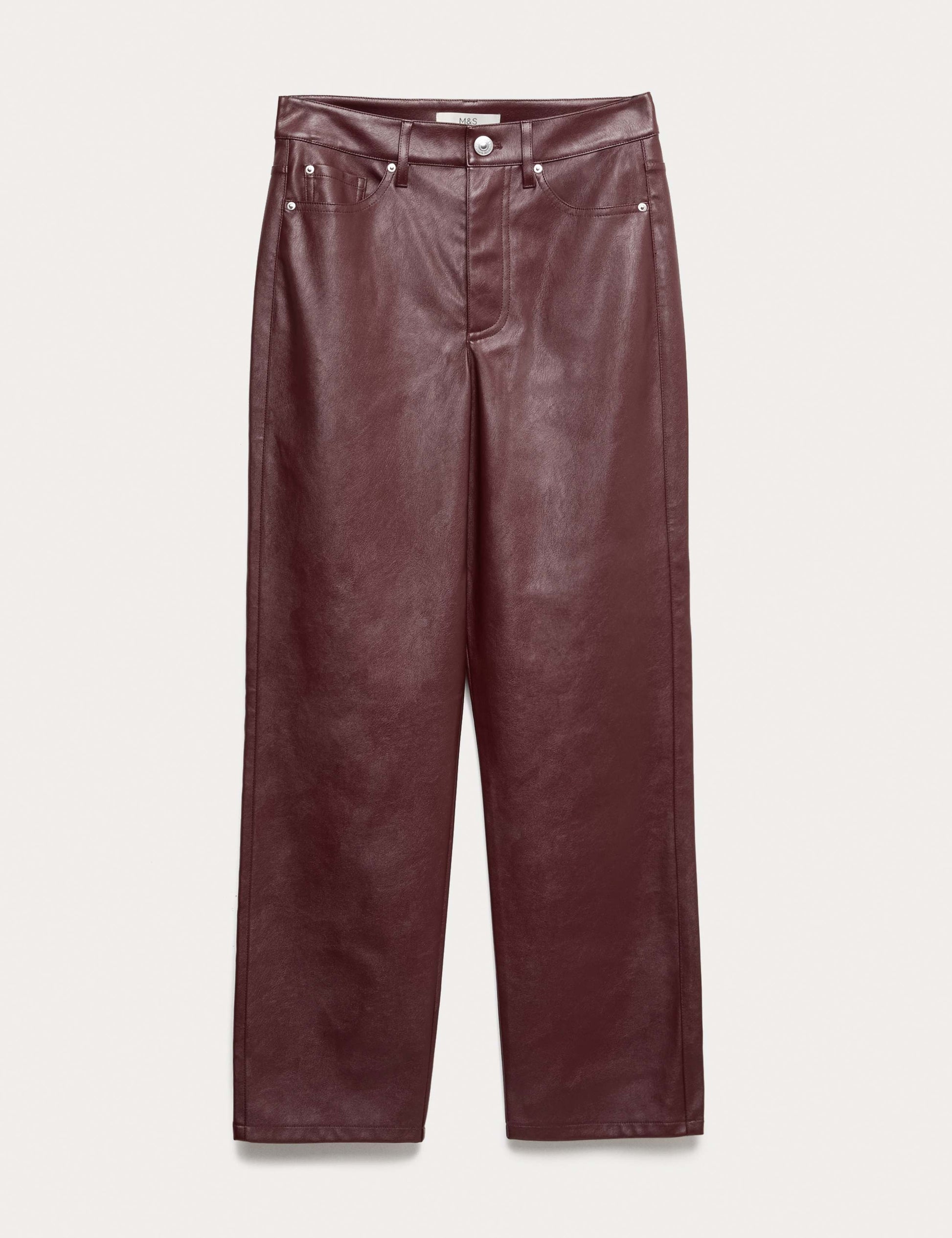 These faux leather trousers are an ideal choice for day-to-night styling. They come in a timeless straight-leg fit, with belt loops for easy accessorising. A button and zip fastening keeps them secure.
