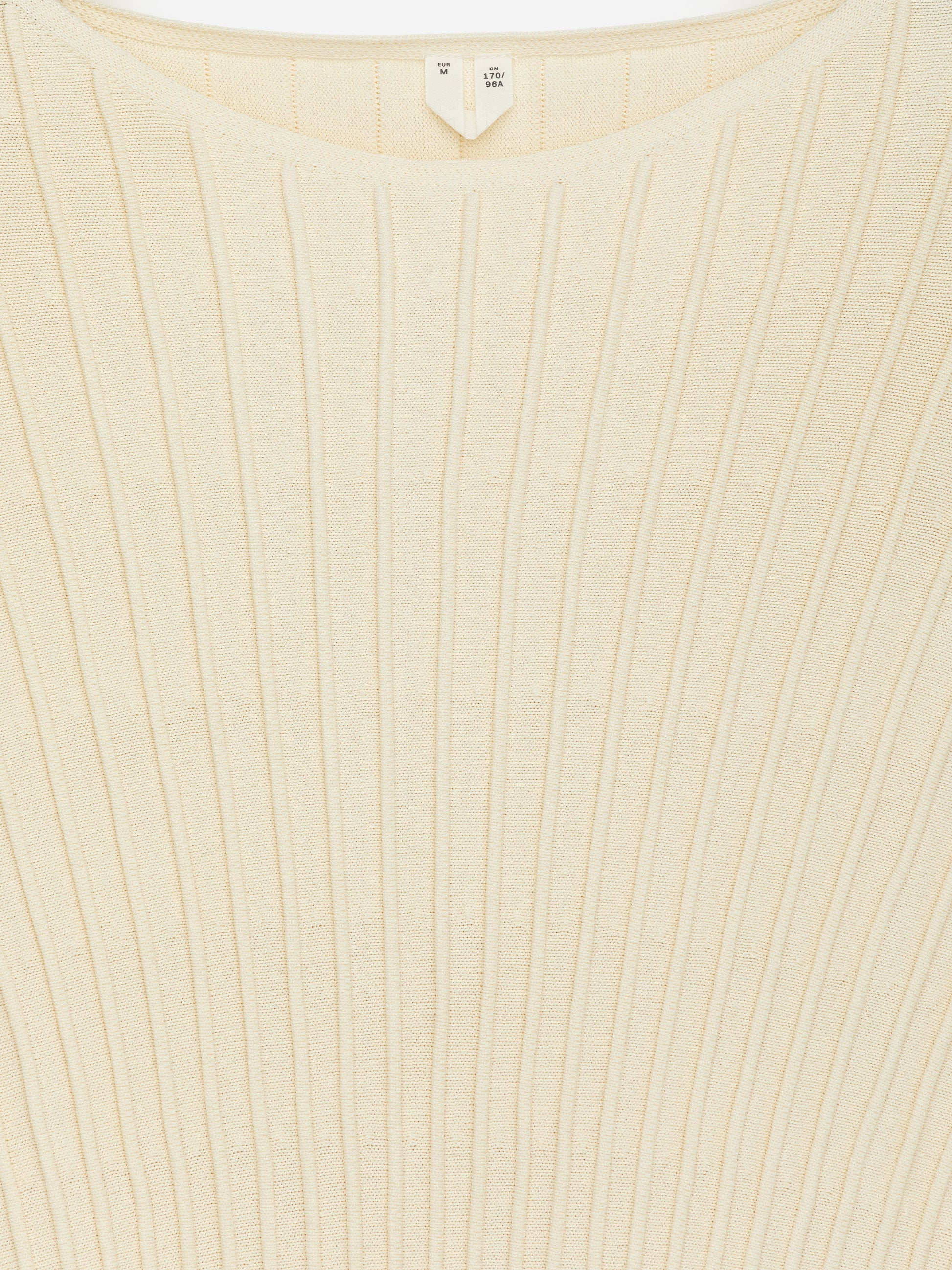 Fine-knit top in a horizontal ottoman stich, giving the garment a ribbed texture. Featuring a peplum silhouette.