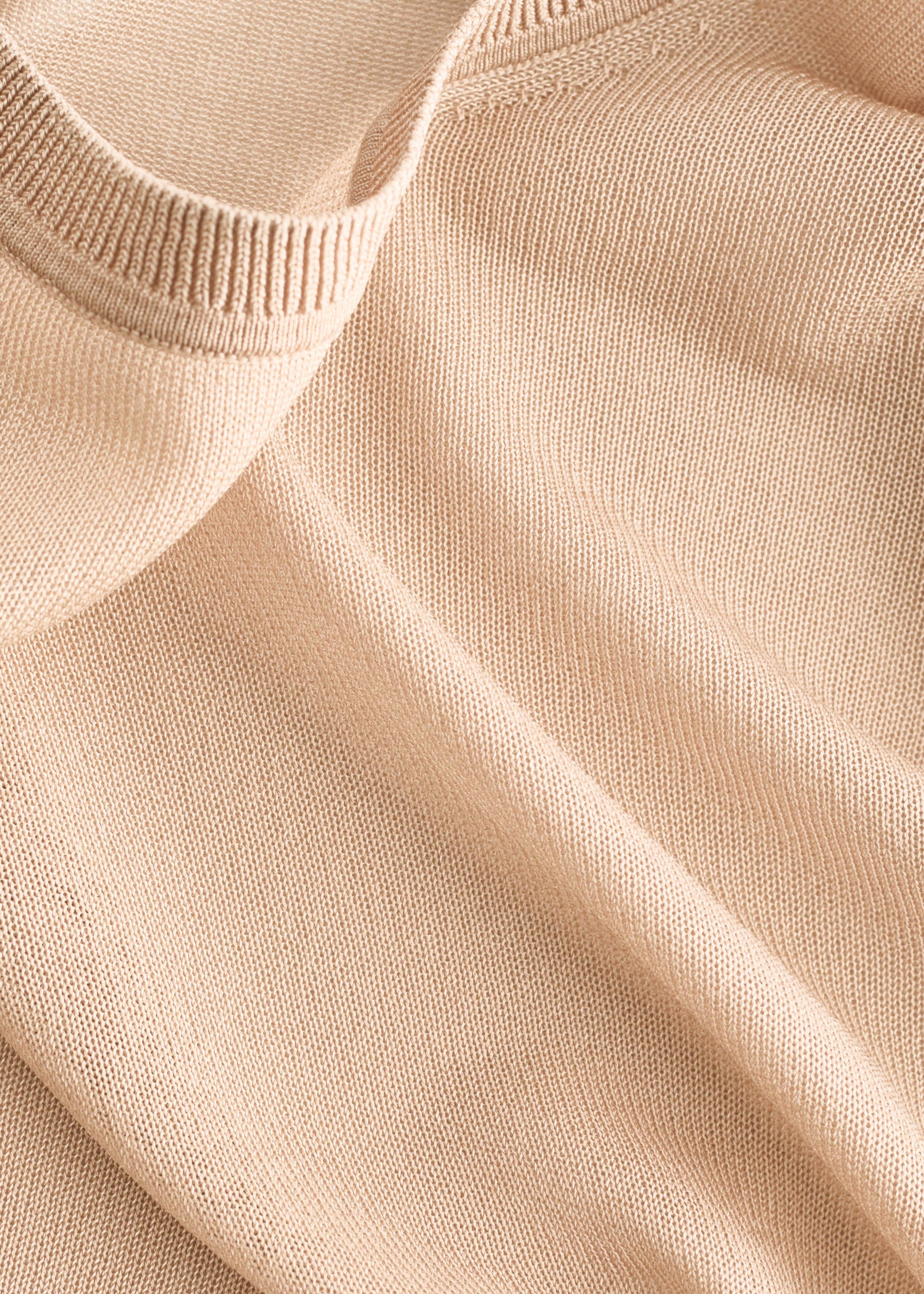 This long-sleeve top is crafted from a fine silk-blend knit, with a lightweight, sheer effect. It features a round neckline and ribbed trims. Wear it alone or layered for versatile styling.