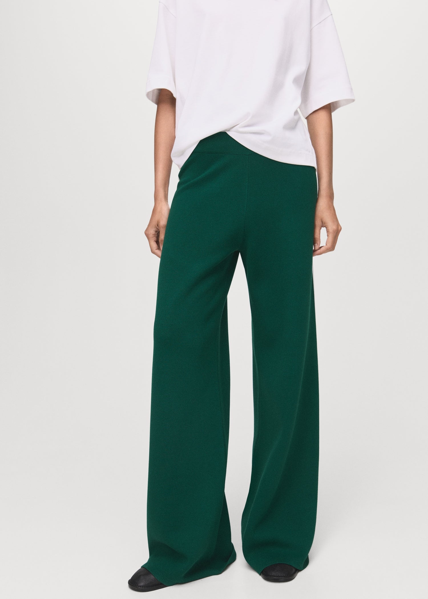 Fine-knit fabric. Long design. Straight design. Mid-rise. Elasticated waistband. No fastening.