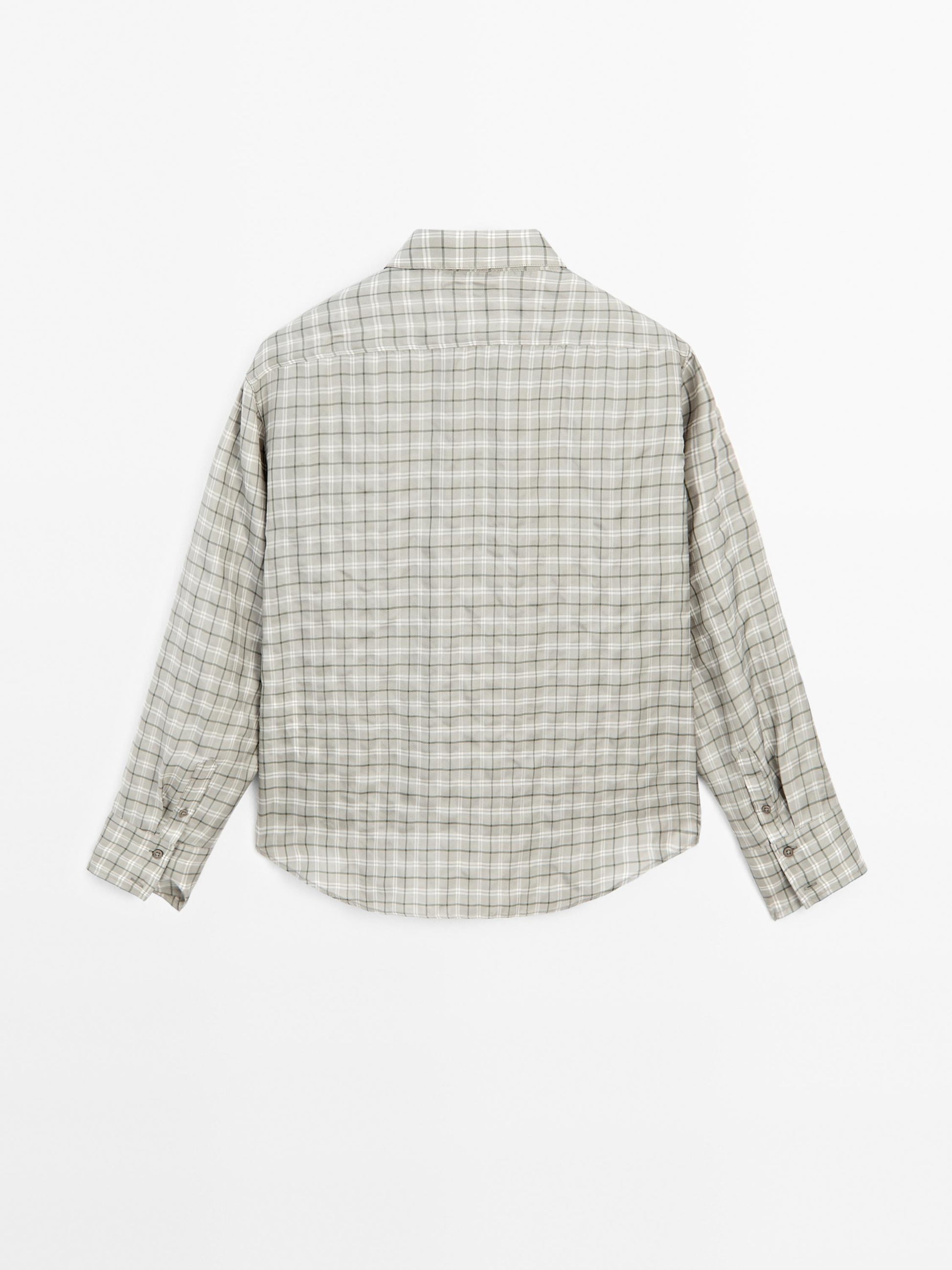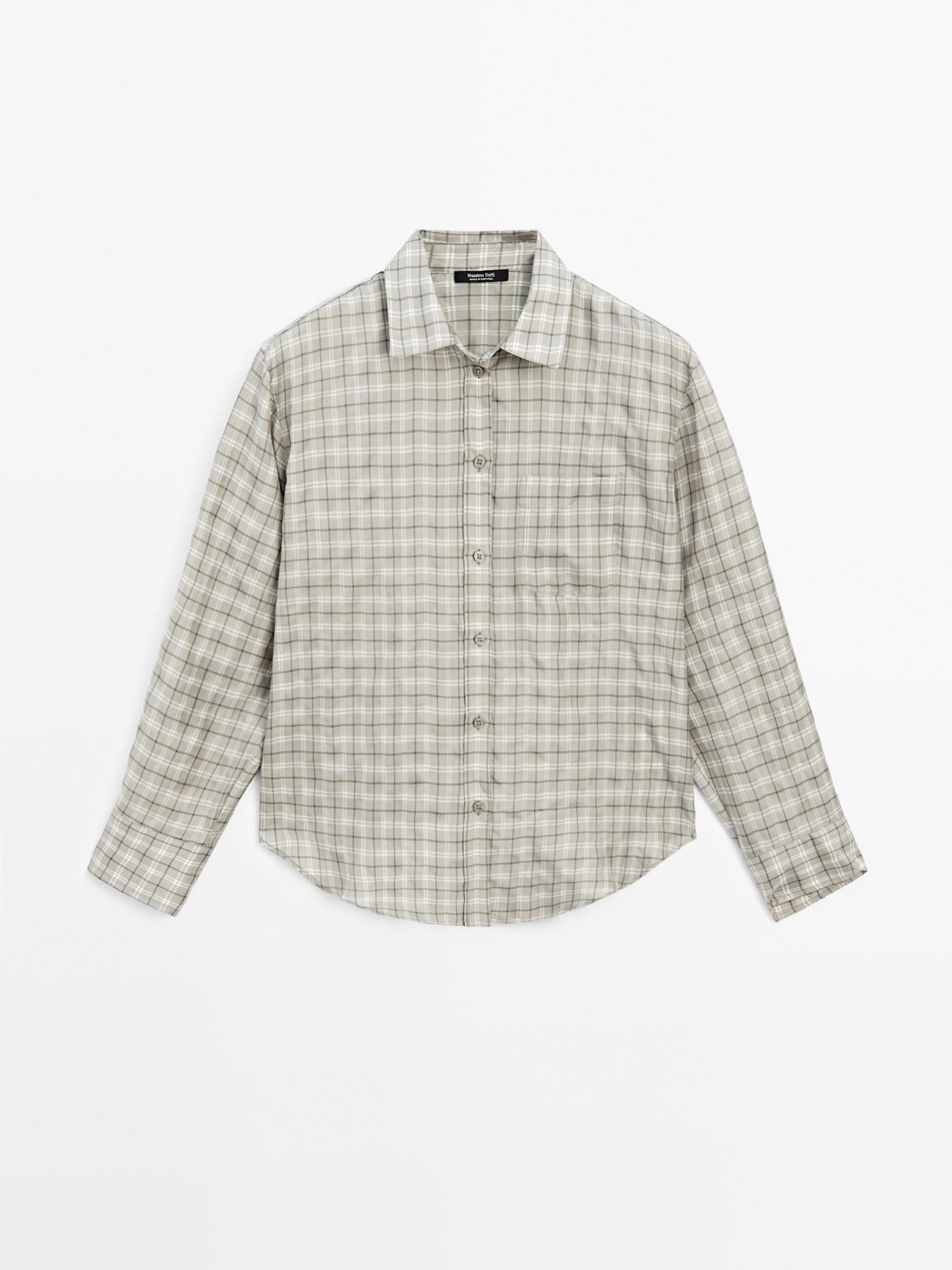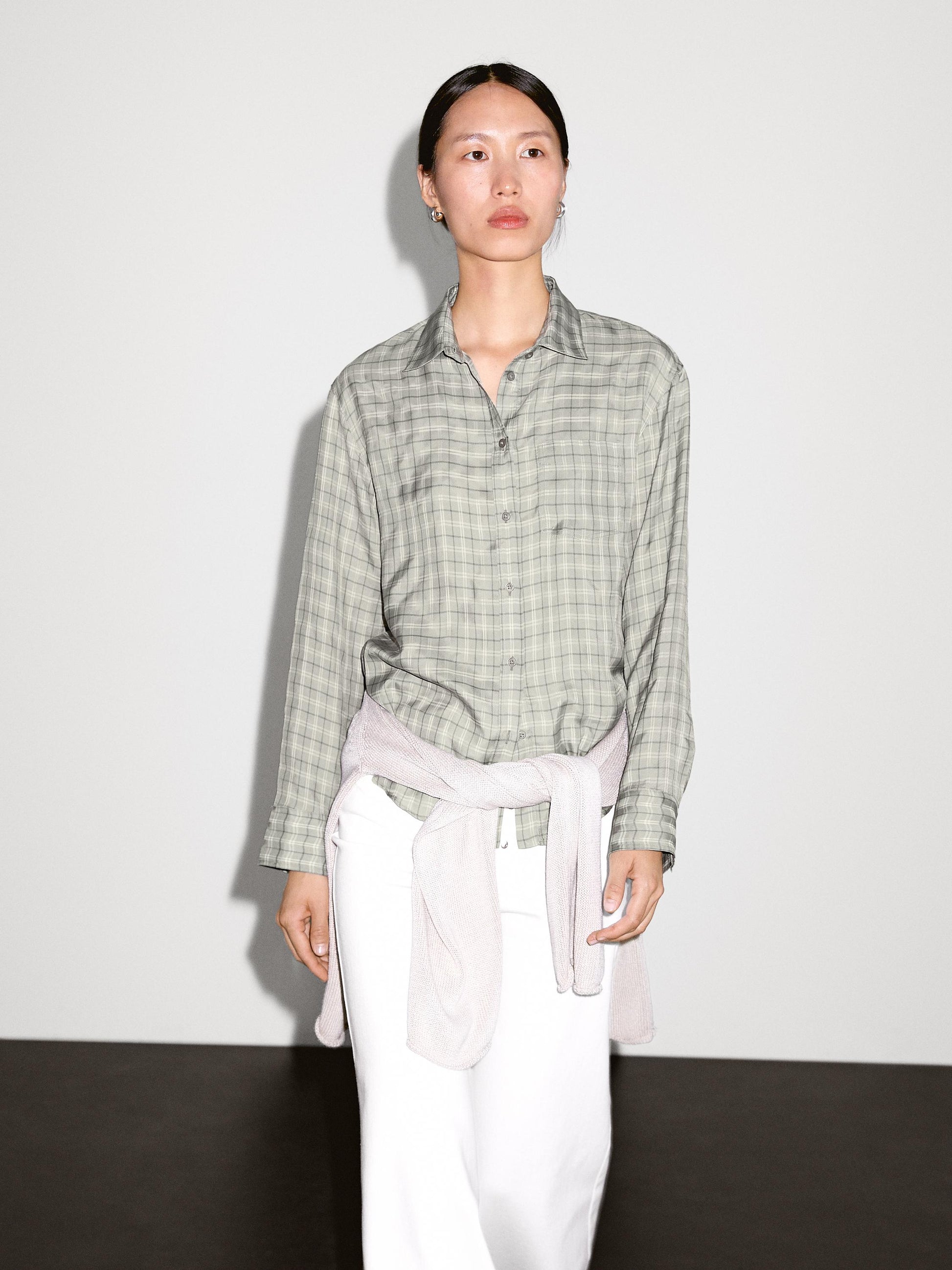 Shirt made of 100% cupro fabric.. Long sleeves with buttoned cuffs. Oxford collar. Button-up front. Besom pocket at the chest. Check print. Flowing fabric.