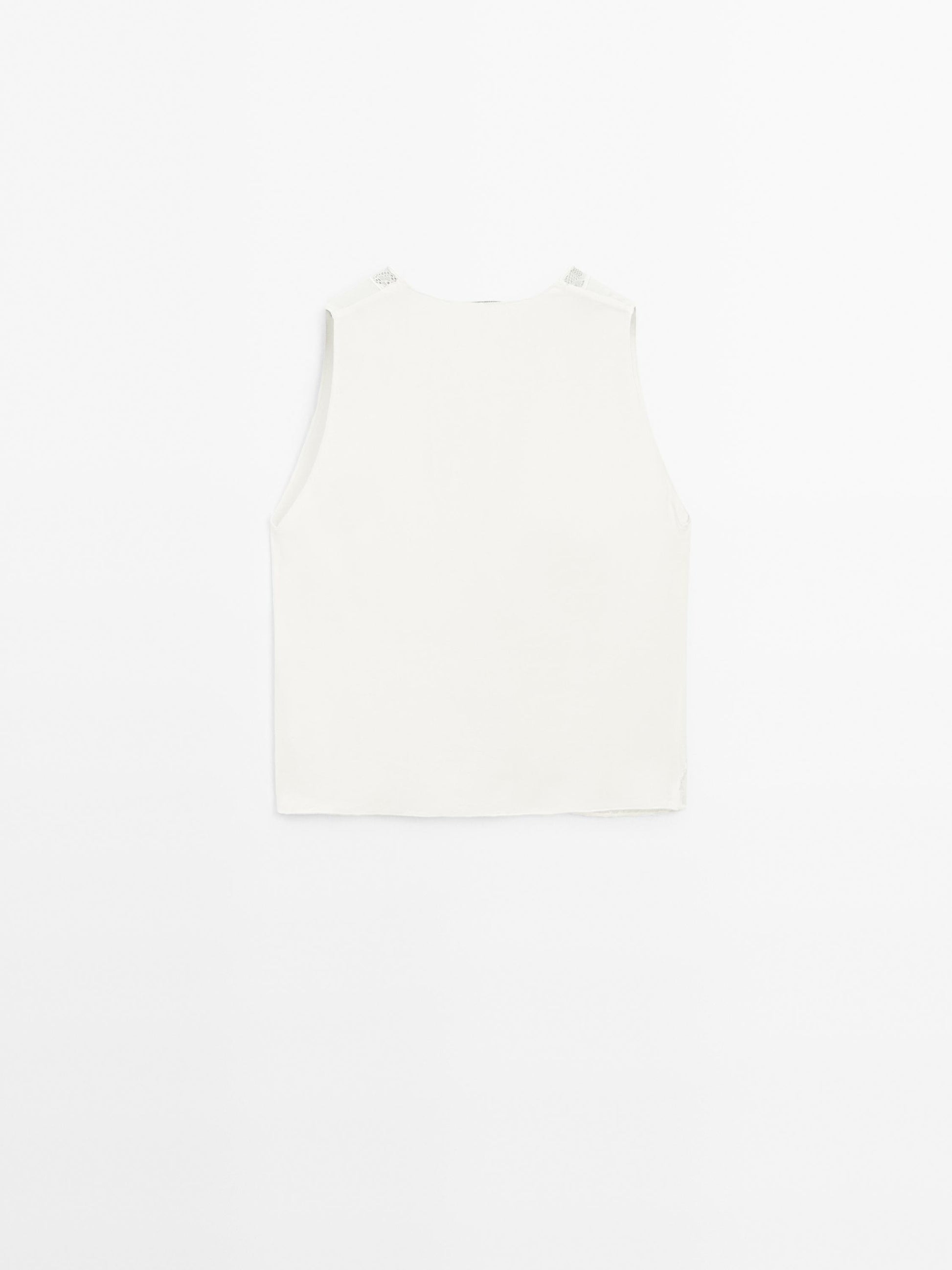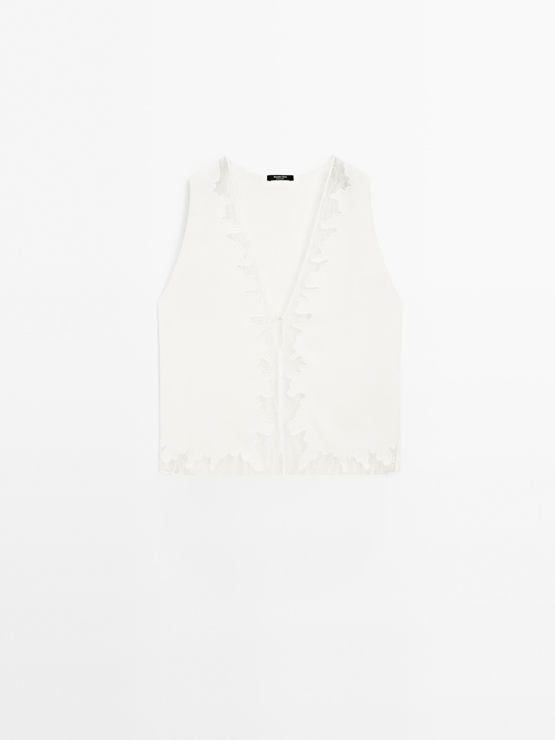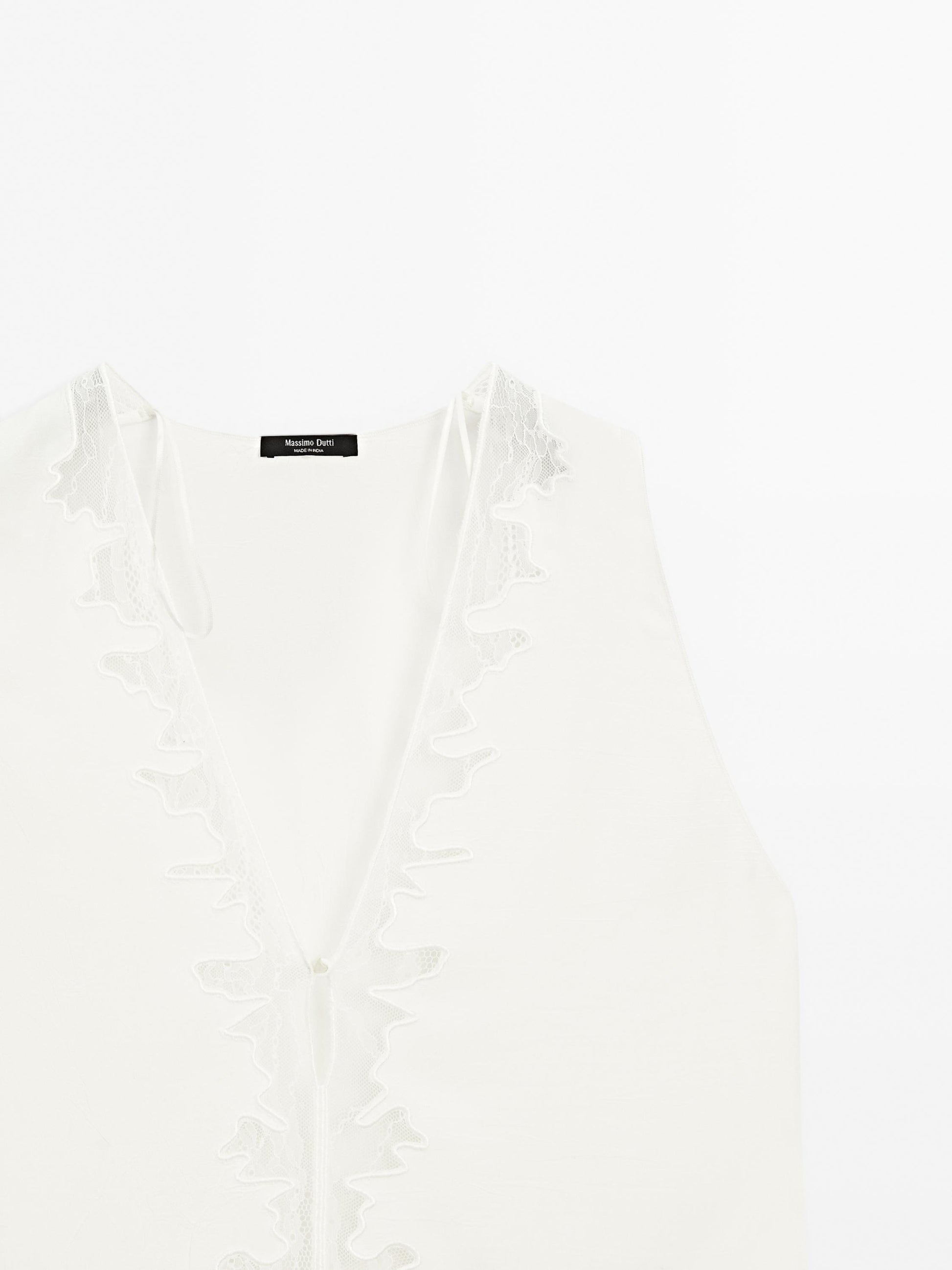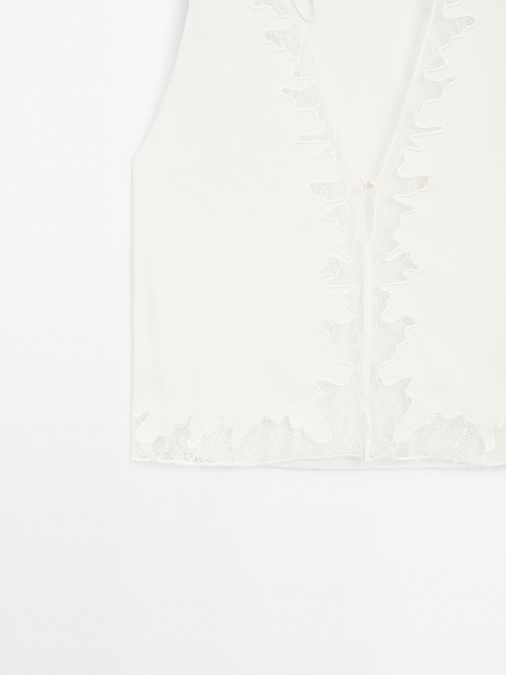 Flowing blouse. V-neck . Sleeveless. Button and press stud fastening. Lace detail.