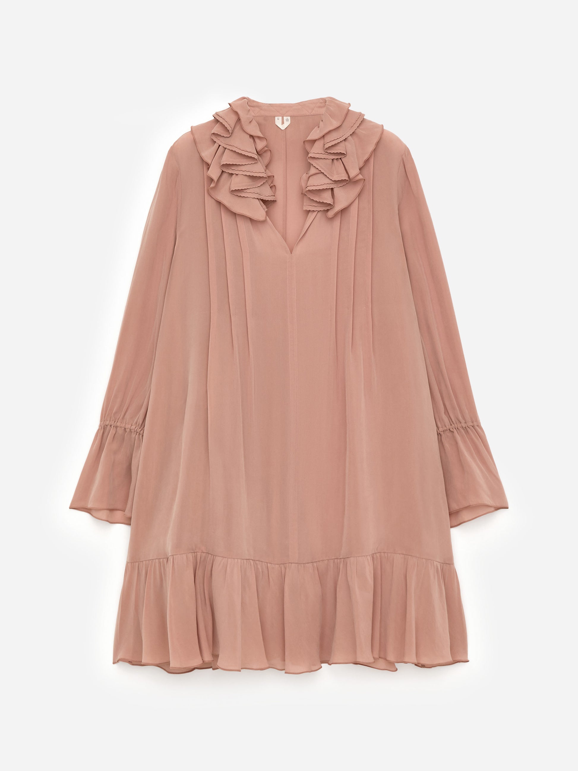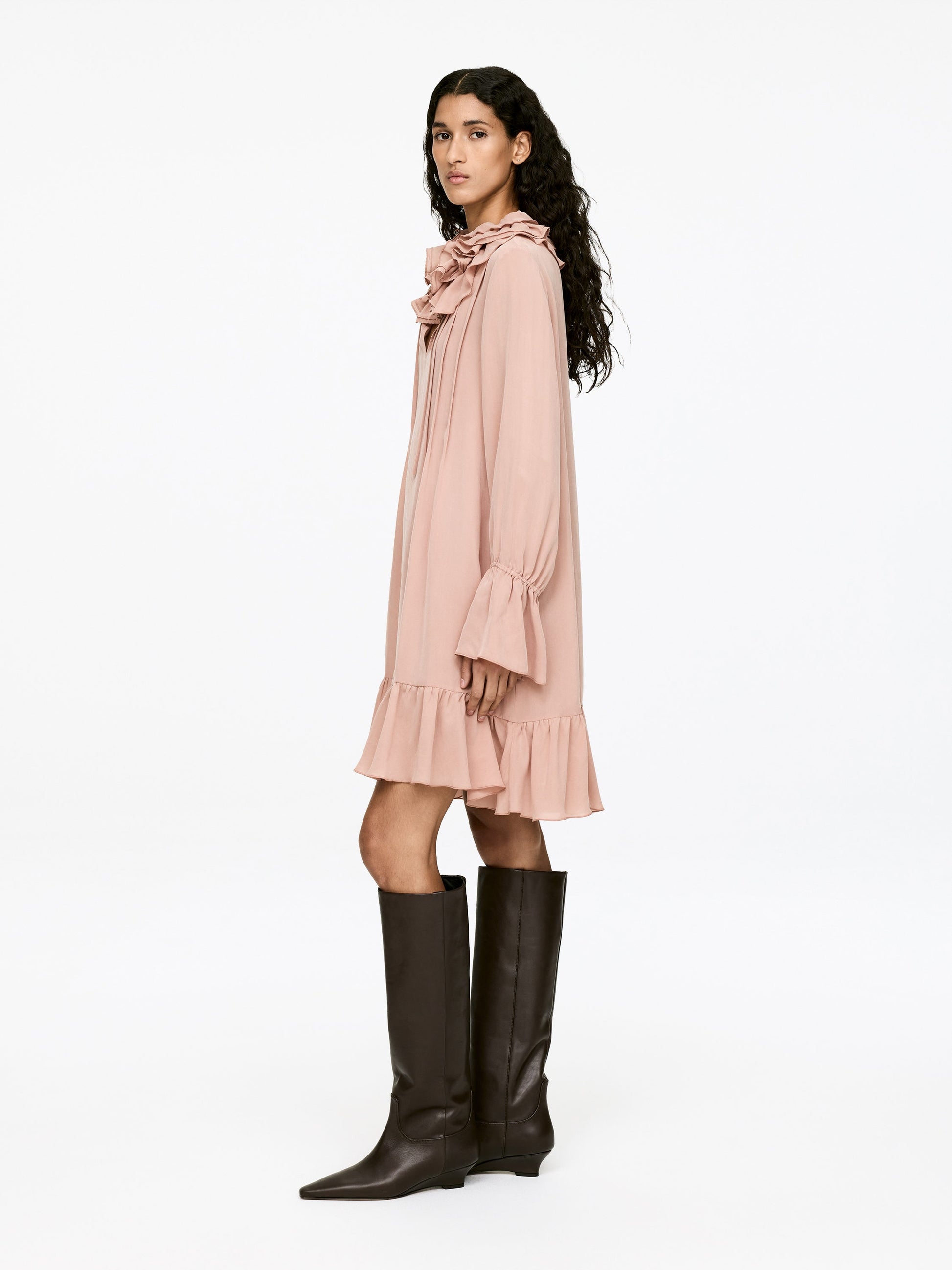 Sheer dress with delicate frill detailing and tie bands at the cuffs. Regular fit.