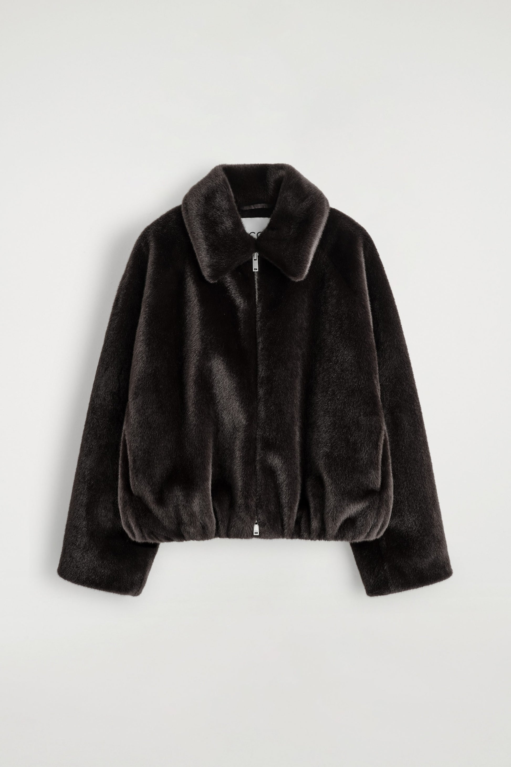 The COS outerwear collection is defined by inviting textures and a rich colour palette. This modern jacket is crafted from luxuriously tactile fur-effect material and designed with a pointed collar, curved silhouette and side pockets. The double-ended zip lends itself to layering, while the deep-chocolate tone will naturally slot into the winter wardrobe.