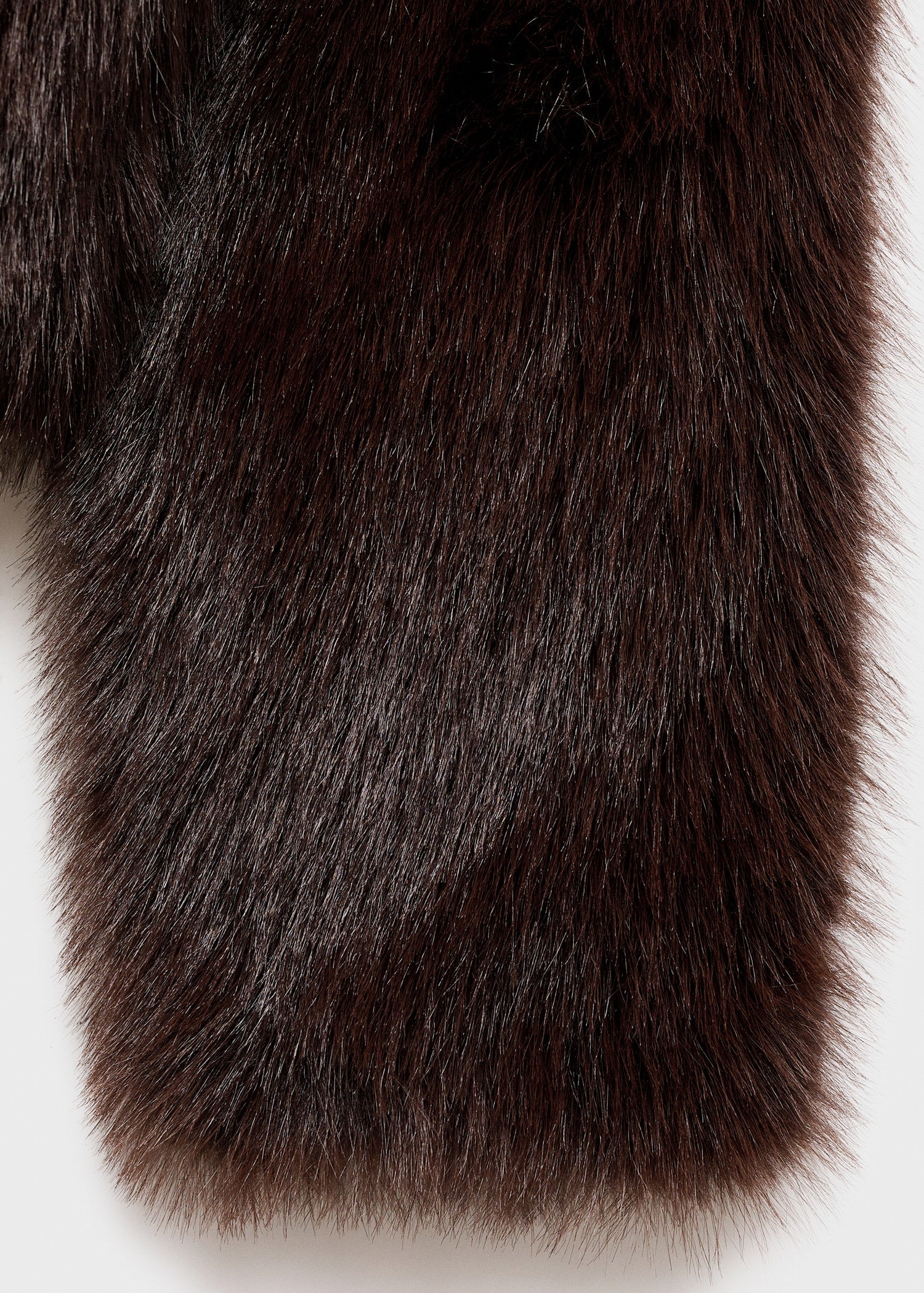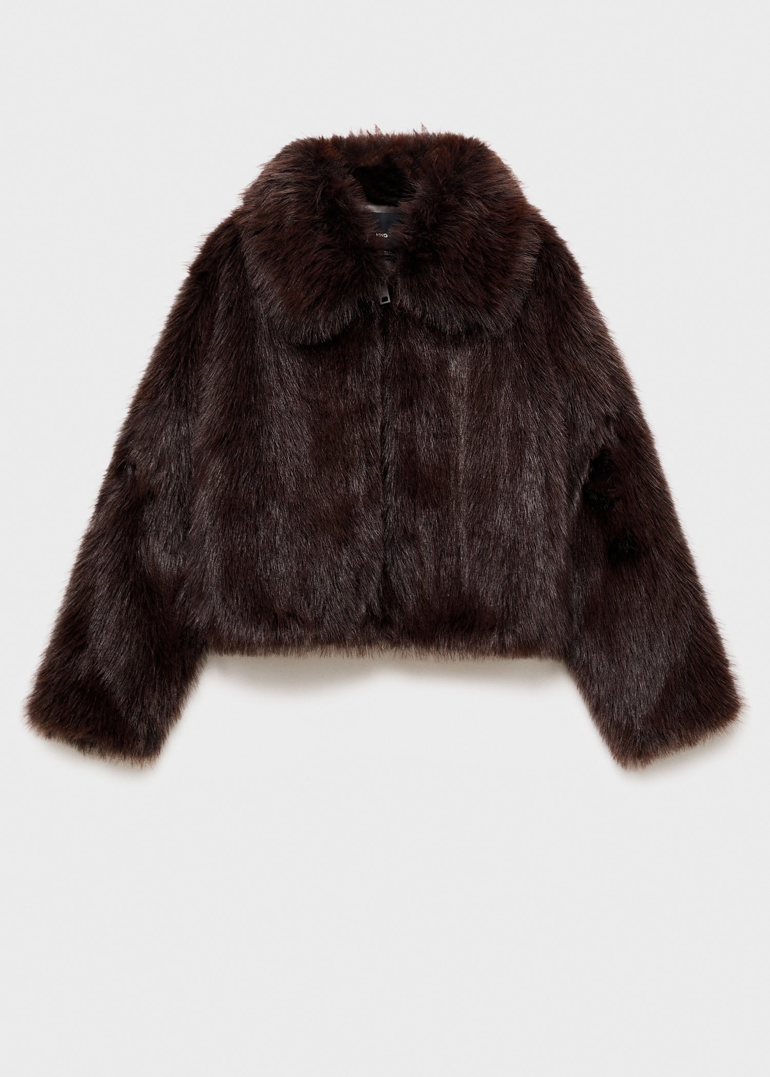Faux fur effect. Straight Design. Lapel collar. Long sleeves. Two front pockets. Front zip closure. Inner lining.
