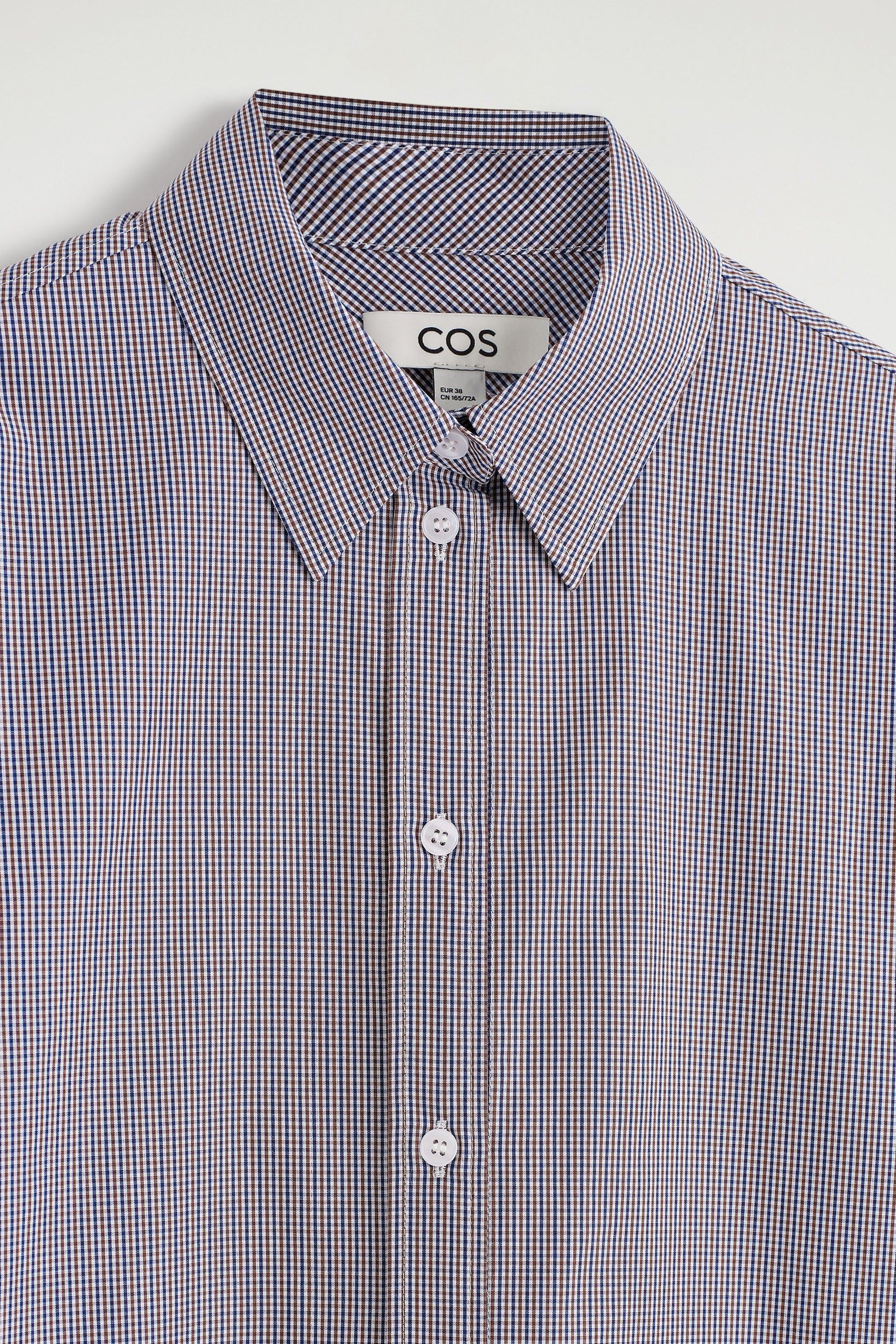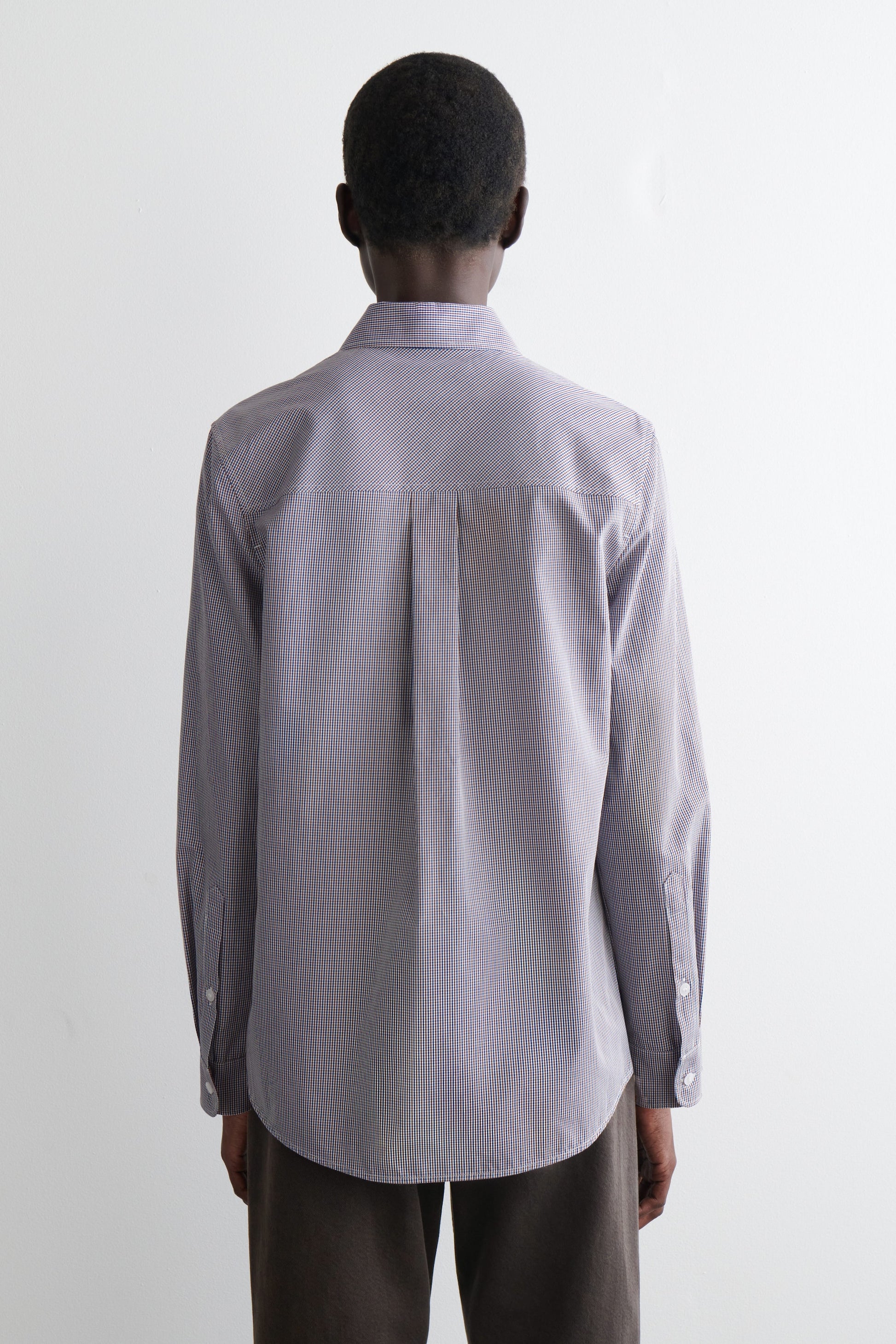The womenswear team reimagine the classic shirt through playful pattern and a timeless colour palette. Printed with micro-checks, this piece is crafted from soft cotton and designed with a pointed collar, long sleeves and buttons at the cuffs.