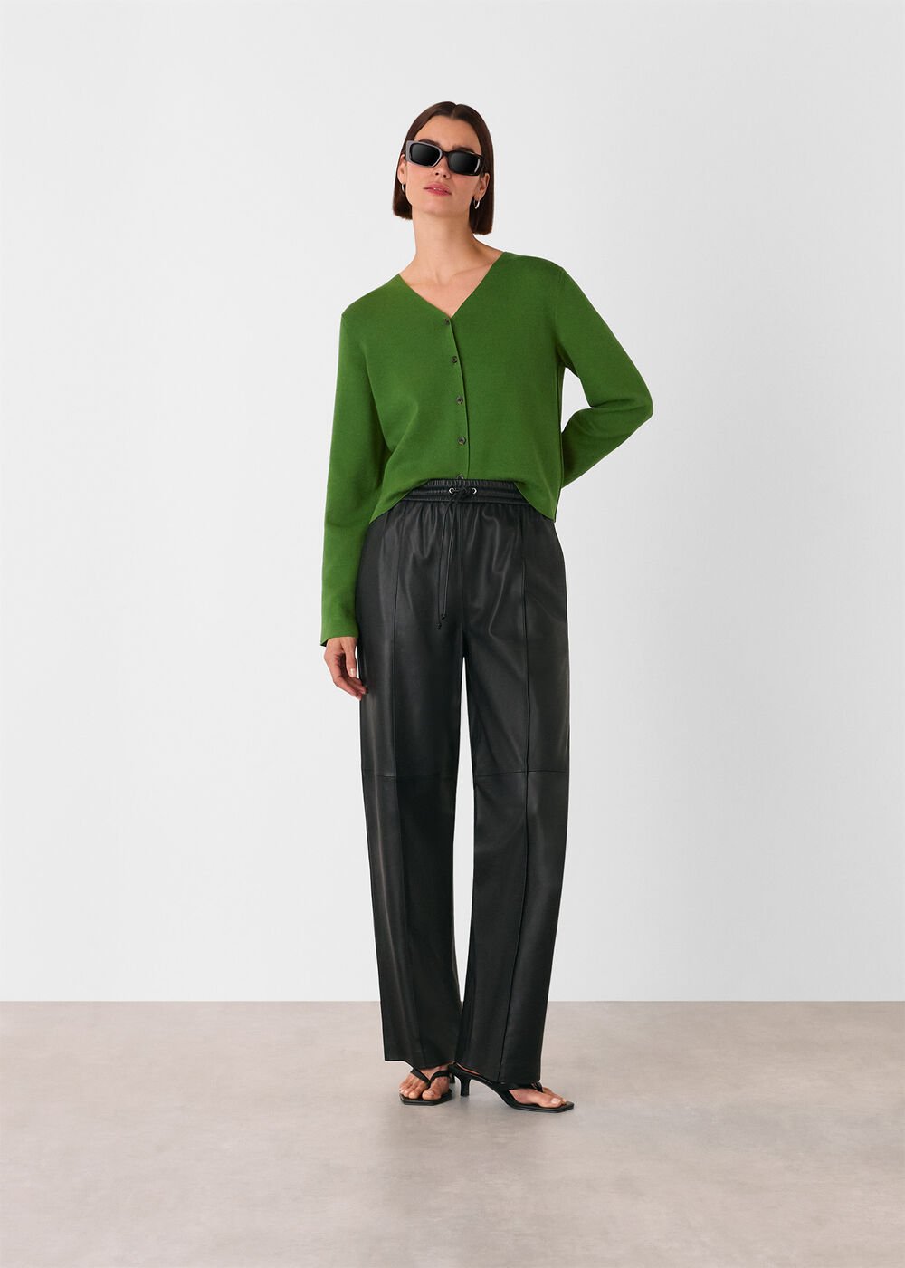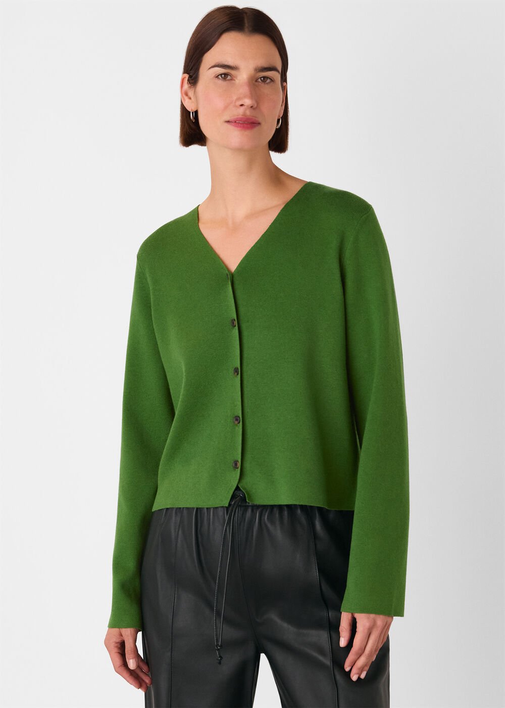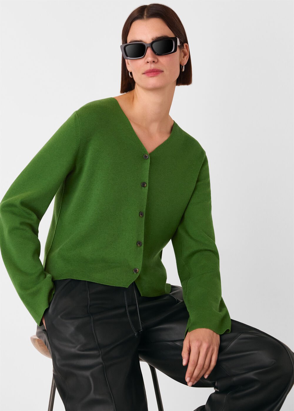 Green V Neck Button Front Cardigan