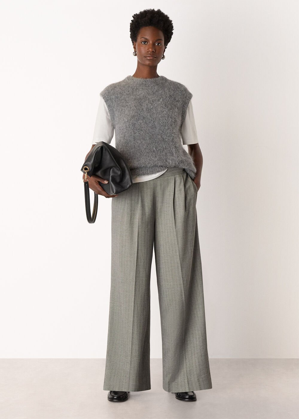 Our Design Team has reimagined our knitwear favourites into a new silhouette introducing the Alpaca Blend Tank. Designed for effortless autumn-winter layering, it can be worn over a crisp shirt or styled on its own for a clean, modern look. Crafted in a versatile grey shade, it offers the soft warmth of alpaca and pairs seamlessly with everything from casual denim to tailored separates.