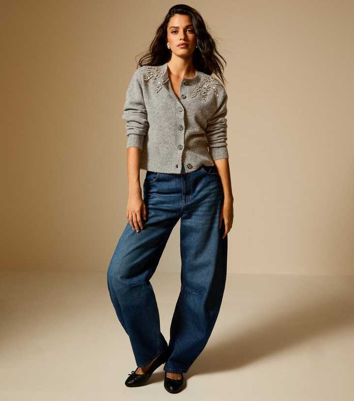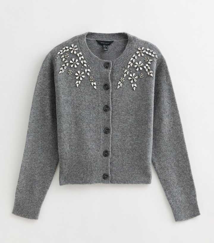 The diamante florals on this grey cardigan make it an addition that will bring shimmer to your knitwear roster. Buttoning up at the front, it has ribbed trims.