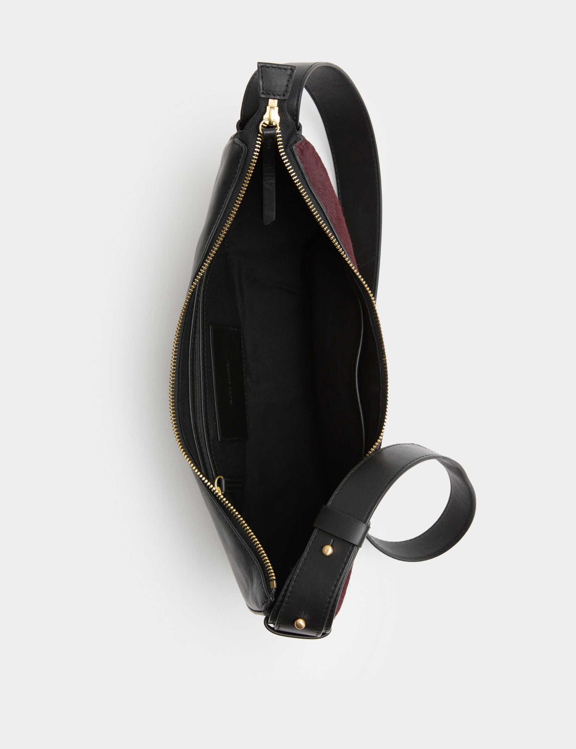 This sling bag from our Autograph collection brings tactile appeal to a minimalist aesthetic. Crafted from sumptuous hair suede, it features smooth leather accents and a metal zip closure for extra textural interest. The interior is fully lined, and has a zipped pocket for smaller items. A wide adjustable shoulder strap completes the modern silhouette.