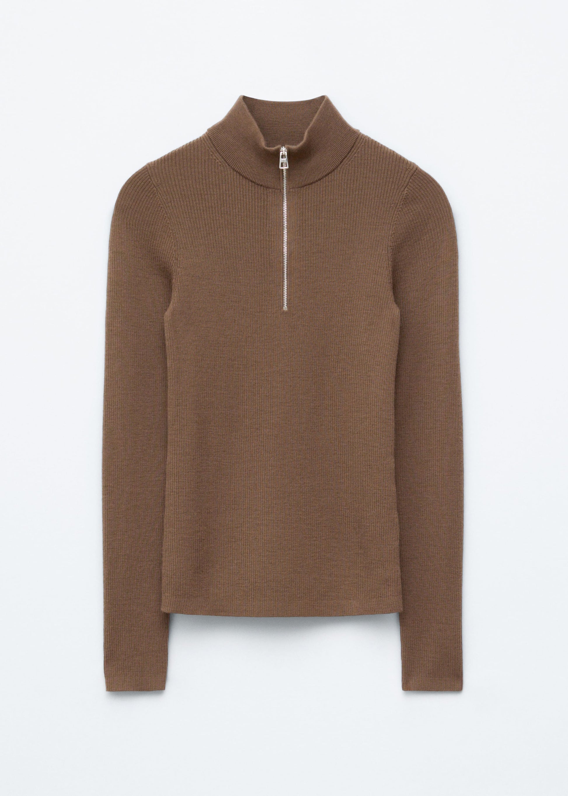 Knitted from pure wool in a ribbed texture, this jumper is cut in a slim silhouette and features a mock neck with a half zip-up.