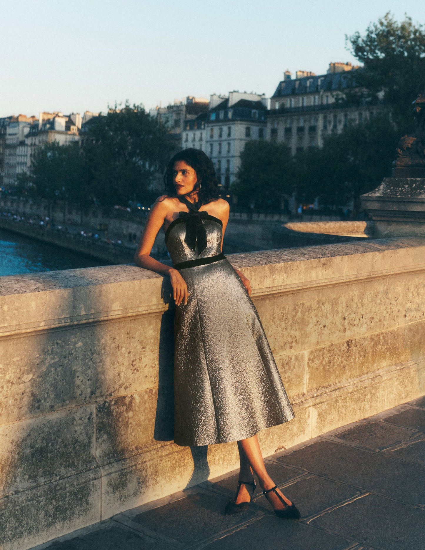 Nothing says “I’m ready to party" like a gold halterneck dress. We've added a velvet bow, deep pockets and a flattering fit-and-flare shape to secure this as your favourite. You can add a black blazer, heels and a good time.