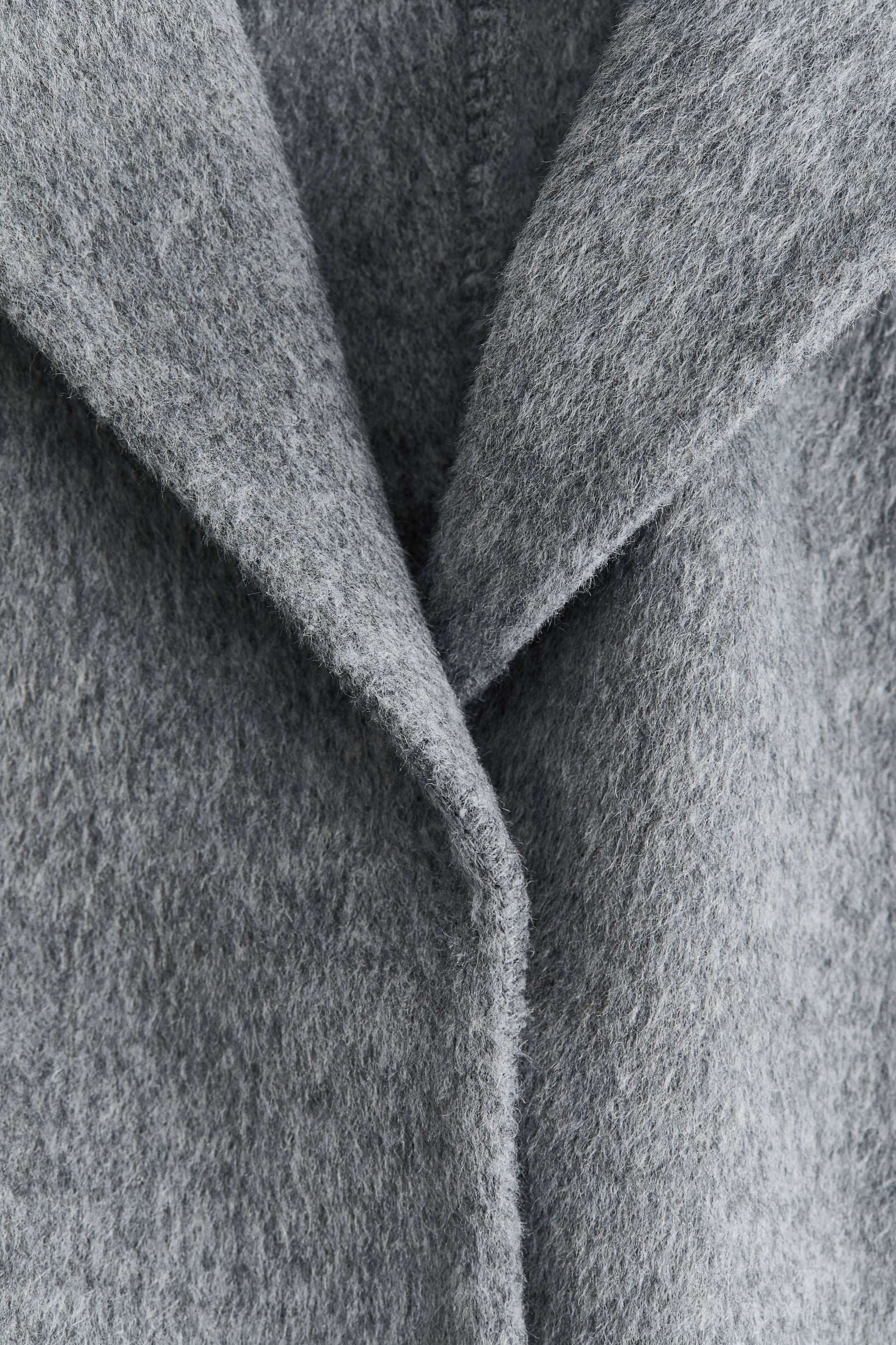 Calf-length, handmade coat in a felted wool blend. Notch lapels, a concealed press-stud at the front and discreet side pockets. High single back vent. Unlined.