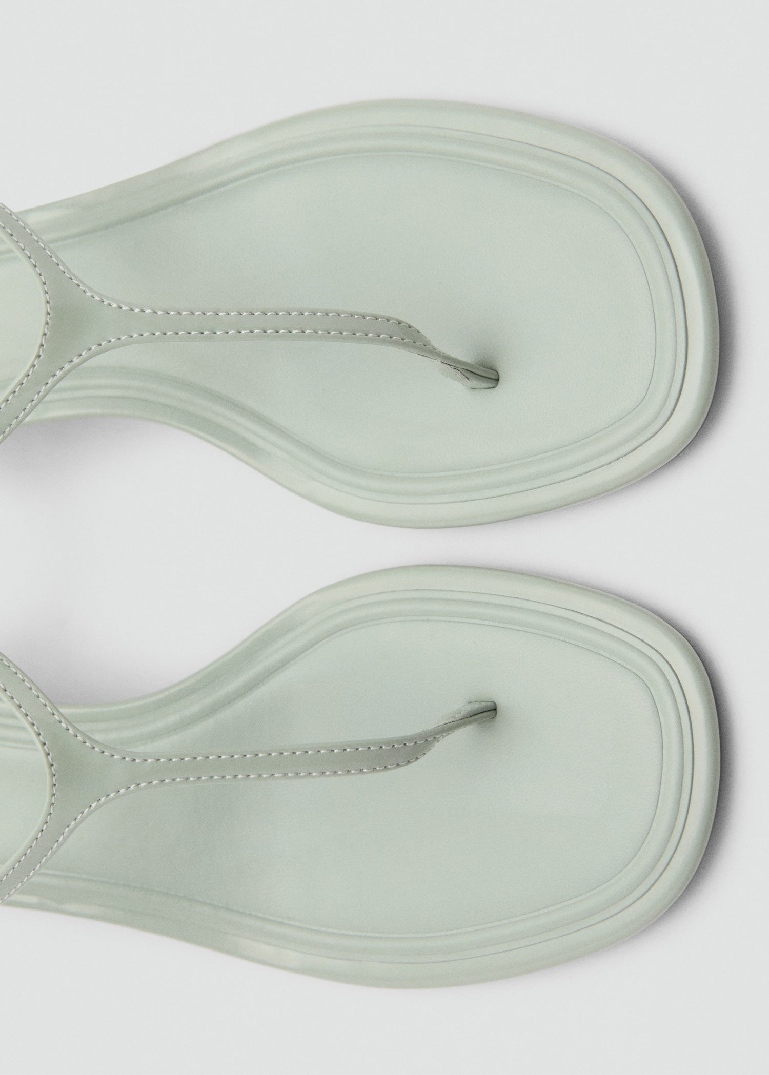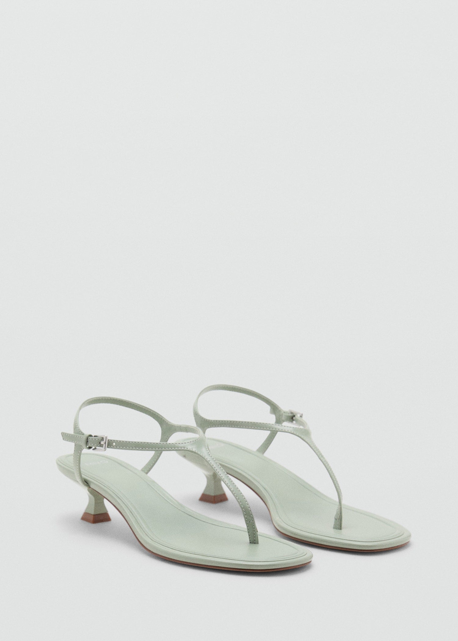 Kitten heel. Open toe. Strap closure with buckle. 3.5 cm heel. The aqua green model is an online exclusive.