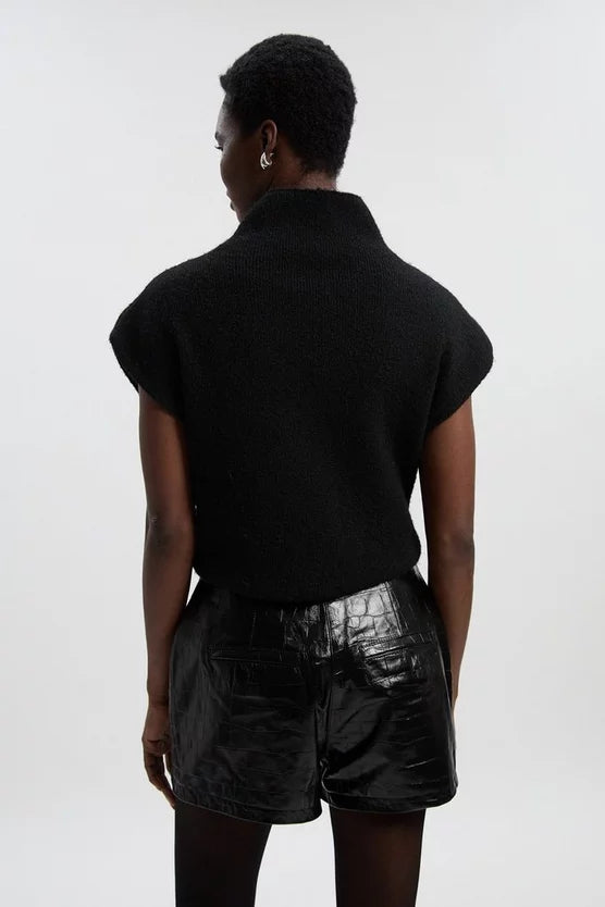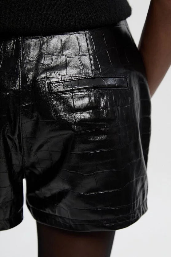 100% Leather. Lining 100% Polyester. Model wears UK Size 8 US Size 4. Model height approx 5'9. Inseam length 7cm