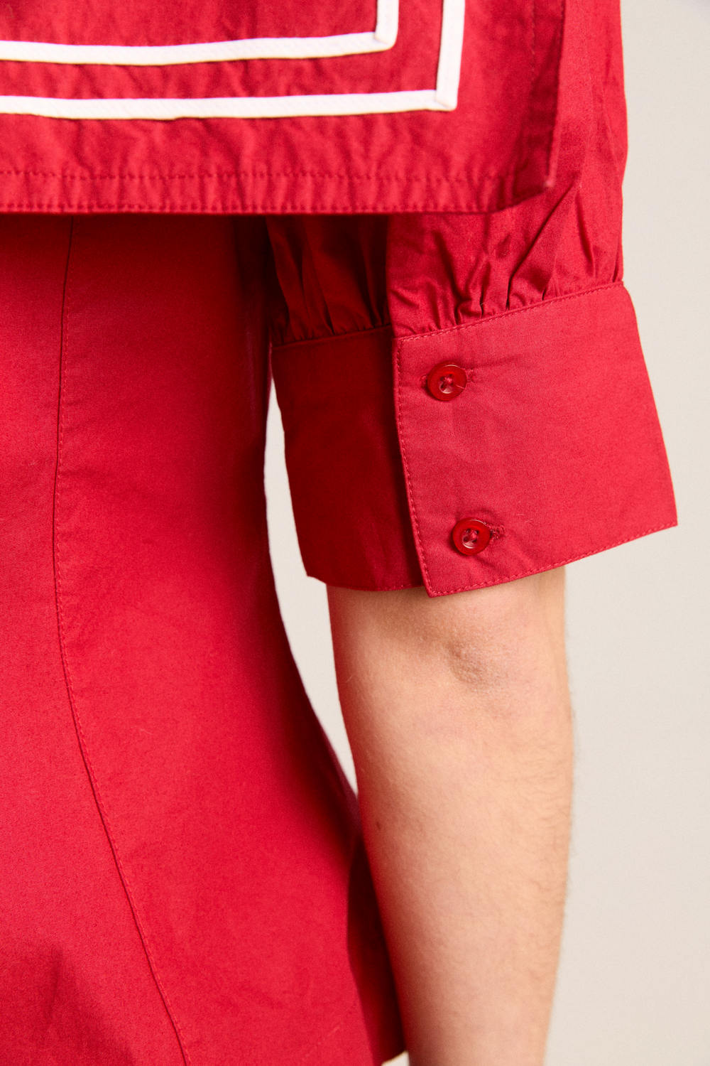 • Oversized sailor collar with contrast stitching