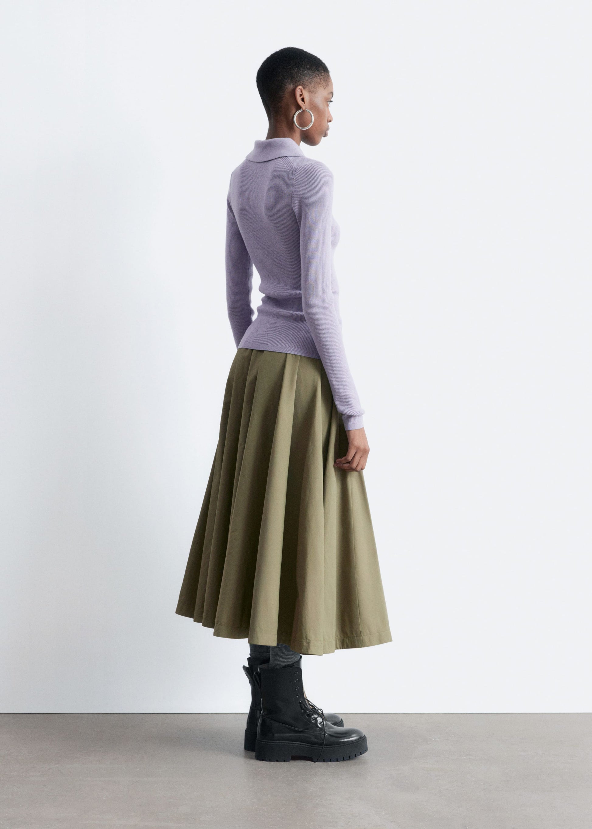 Long-sleeve top knitted from a wool blend. Designed with a classic collar and a keyhole neckline sealed with a pearl button.