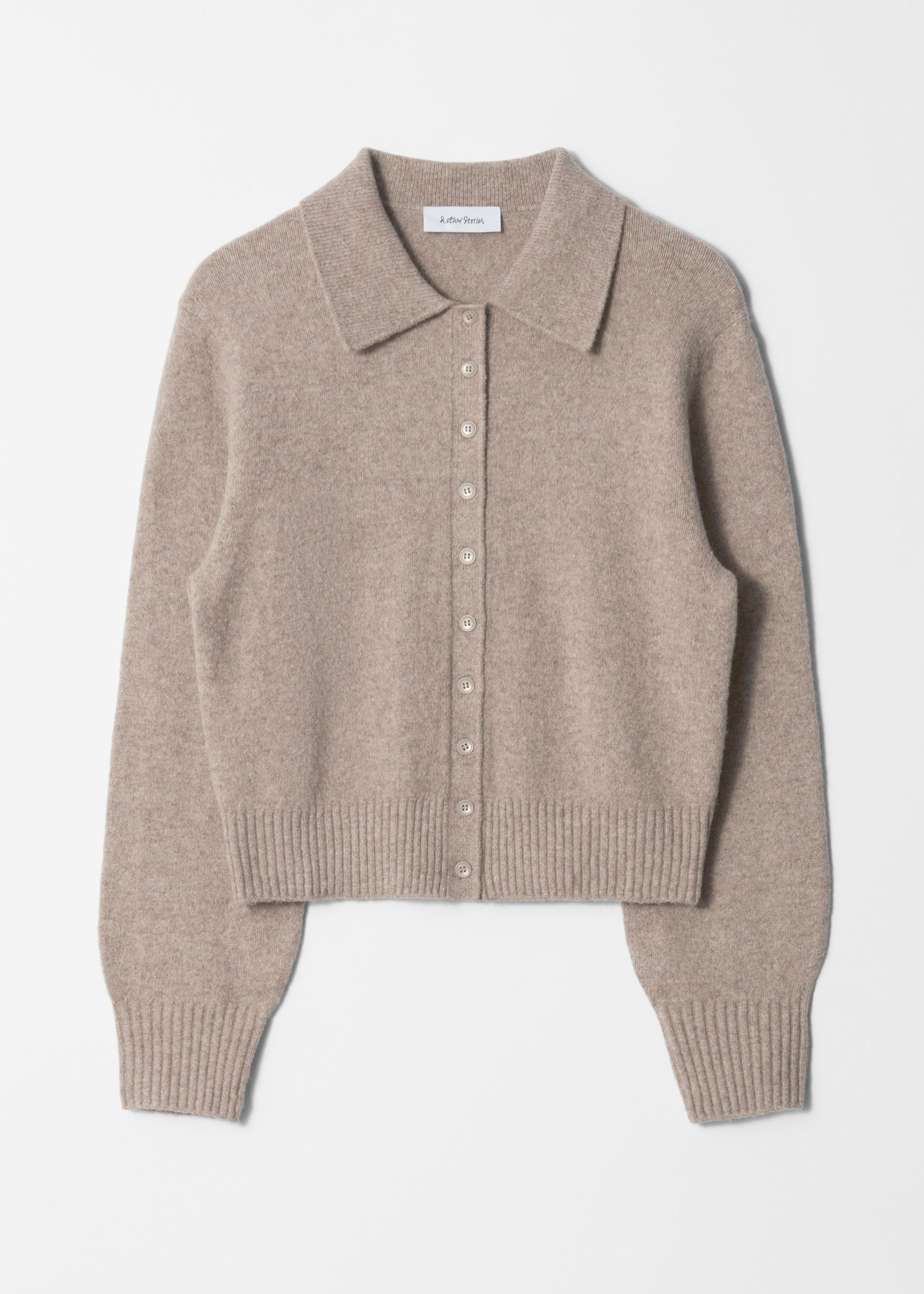This cardigan is knitted from a soft cotton blend. Designed in a regular fit, it features a classic collar, dropped shoulders, and ribbed cuffs and hem. Traced with buttons down the front. Wear it as a standalone polo sweater or layer it over t-shirts and tanks.