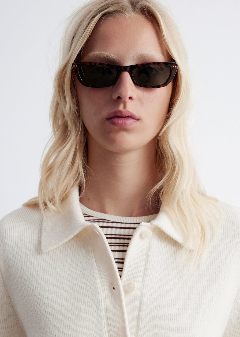 A preppy take on your usual staple knits, this short-sleeve cardigan is knitted from a warm merino-wool blend. Designed in a straight silhouette, it features a classic collar, ribbed trims, and tonal knitted buttons. Finished with rib-detailed faux pockets.