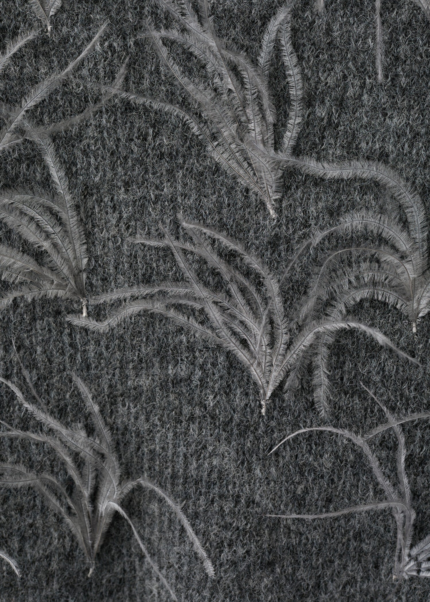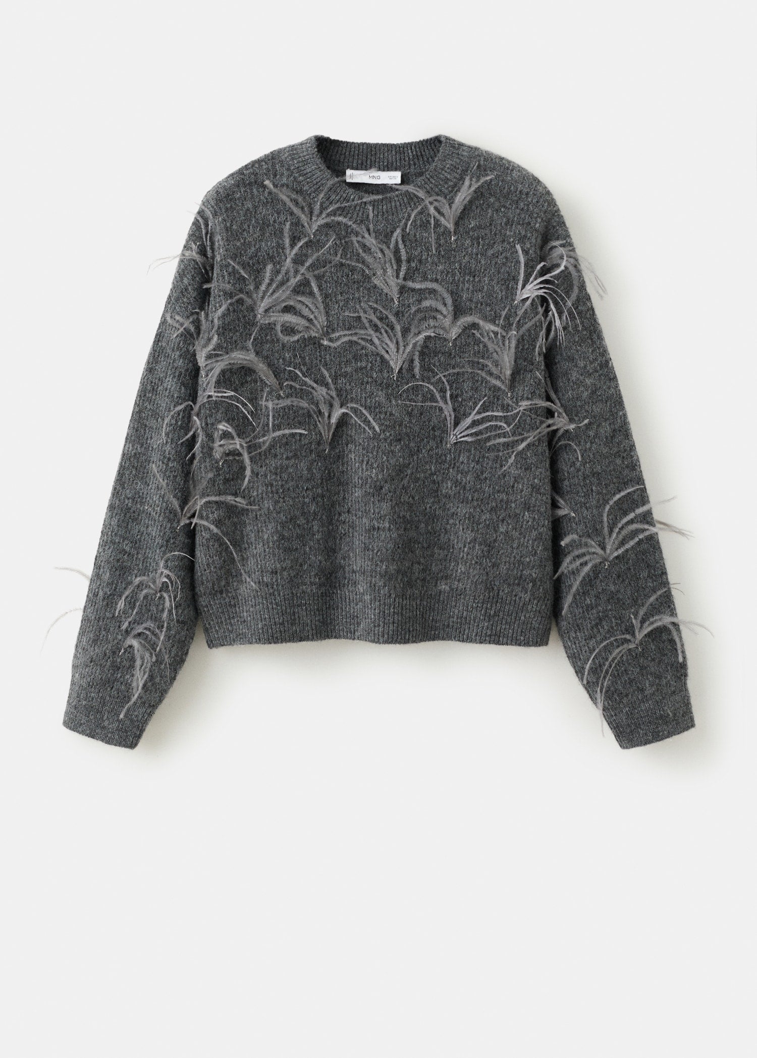 Crafted from medium-knit fabric, this straight design features a box neck and long sleeves, adorned with ostrich feathers