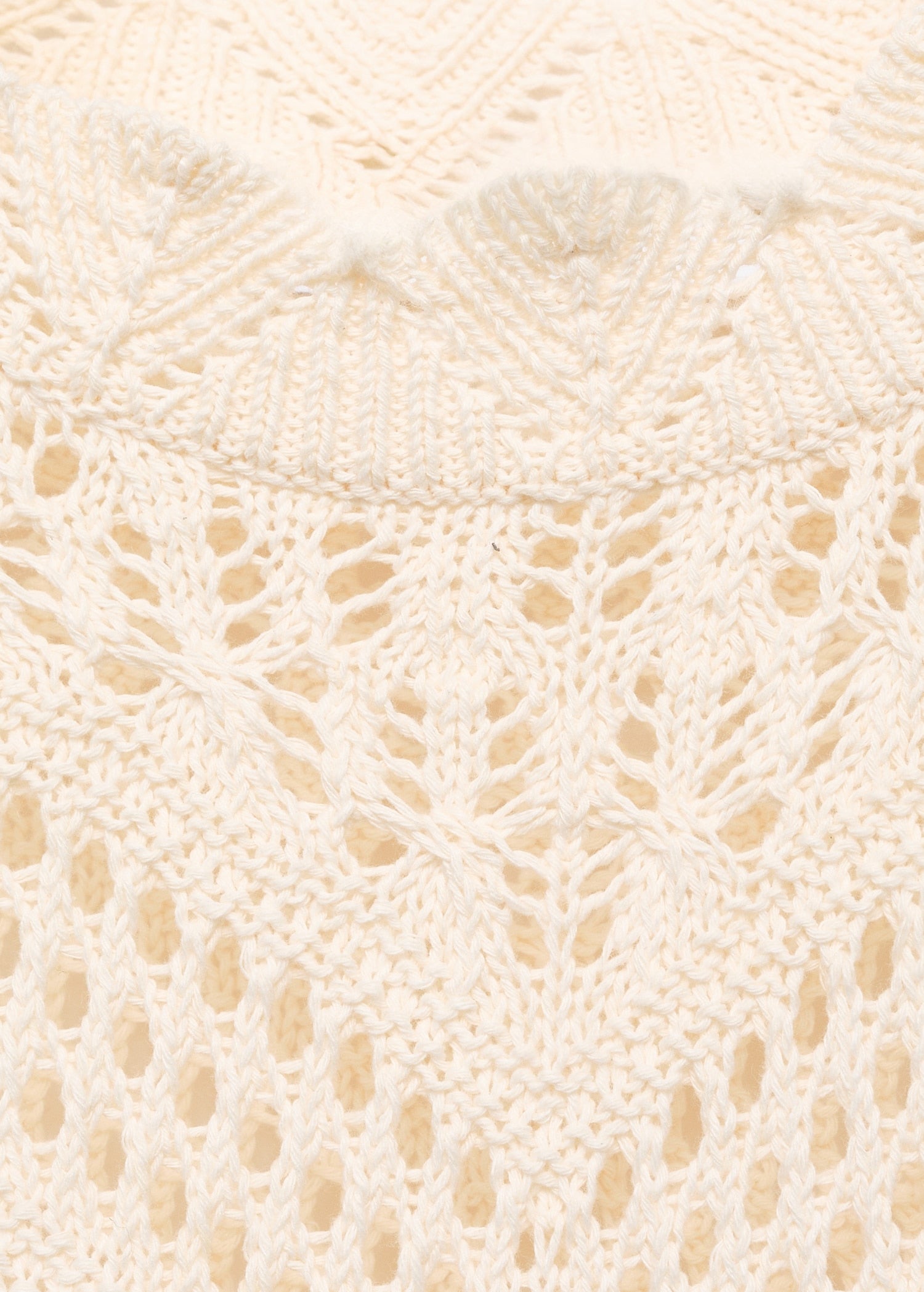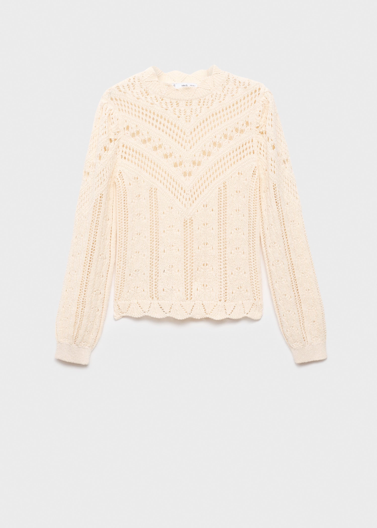 Medium-knit fabric. Openwork details. Straight design. Round neck. Long sleeve. No fastening.