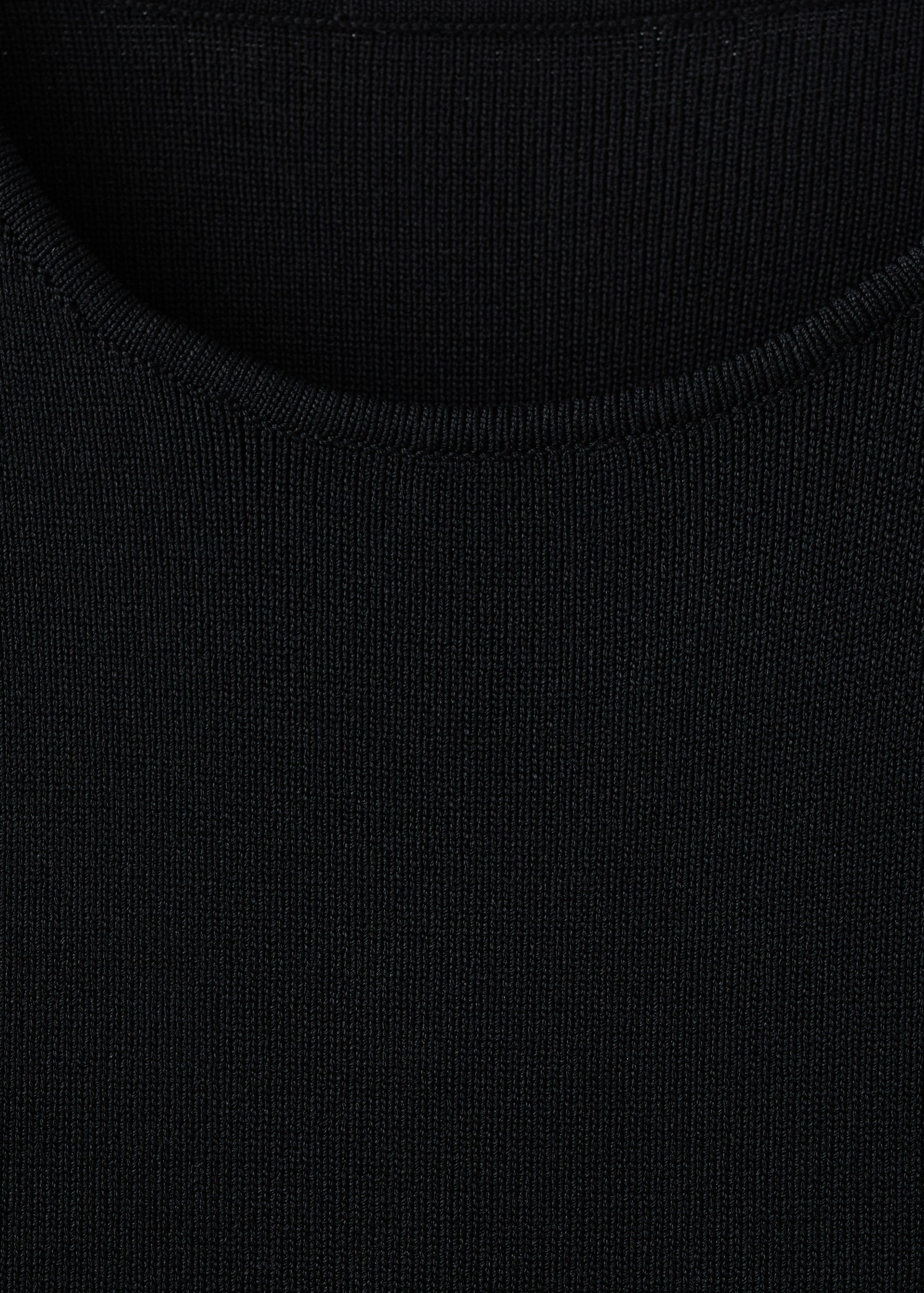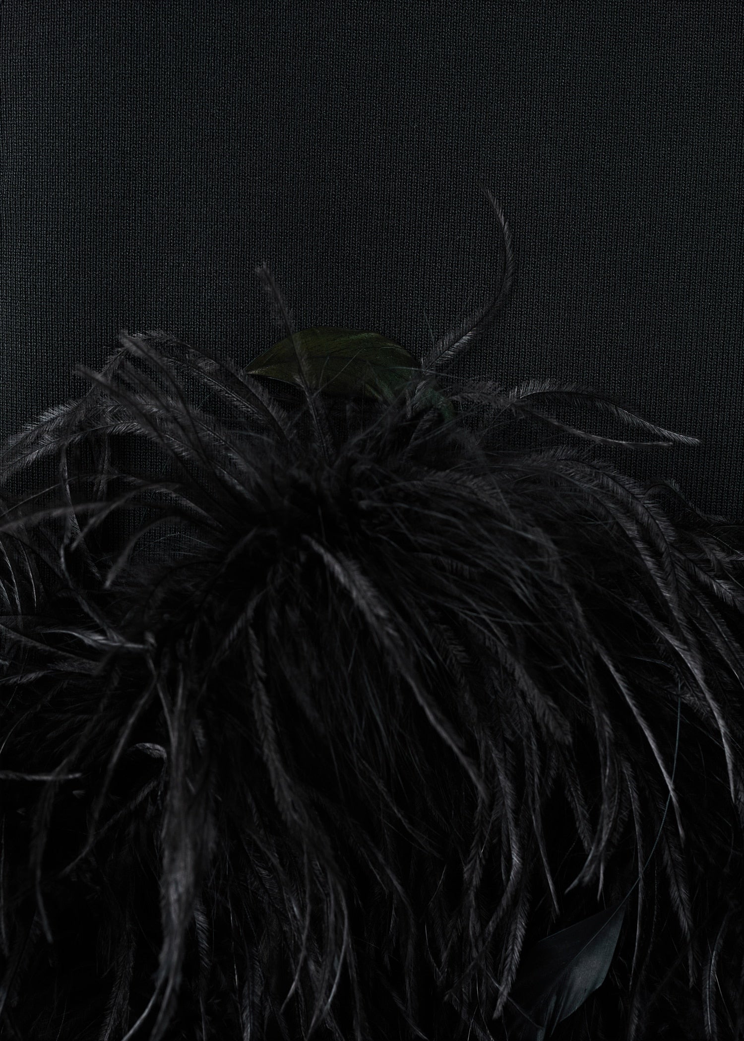 Perfect for pairing with structured maxi skirts or tailored trousers, this top redefines contemporary luxury with unparalleled personality. Its scalloped hem with feathers adds movement and texture, making this garment an ideal statement piece. Crafted from fine-knit fabric, this fitted design features a crew neck and wide sleeveless straps. The feather embellishment at the hem adds a distinctive touch. No fastening for added comfort. This garment is part of our party and event collection, designed to elevate your looks for special occasions. Items from the CAPSULE collection can be exchanged or returned within 14 days from the date of dispatch