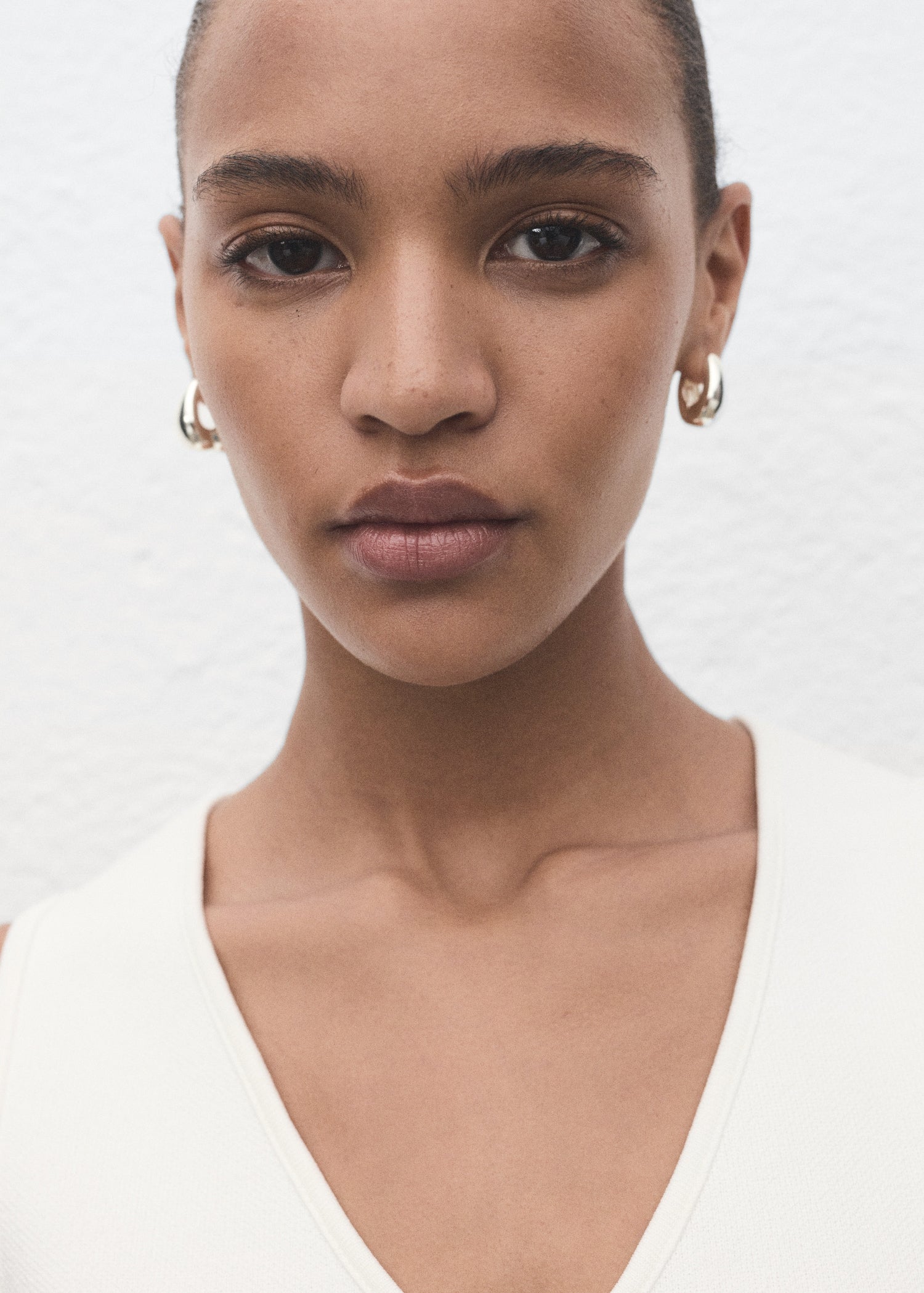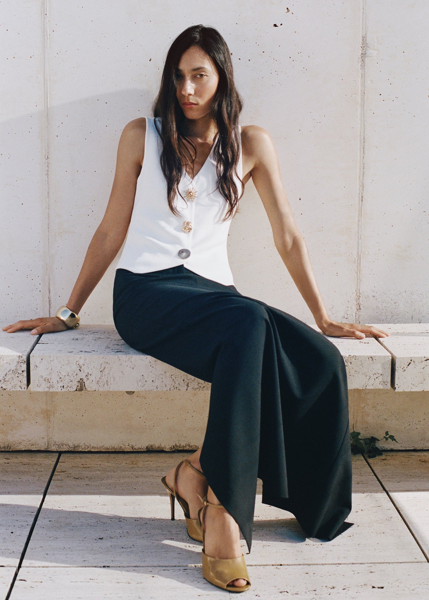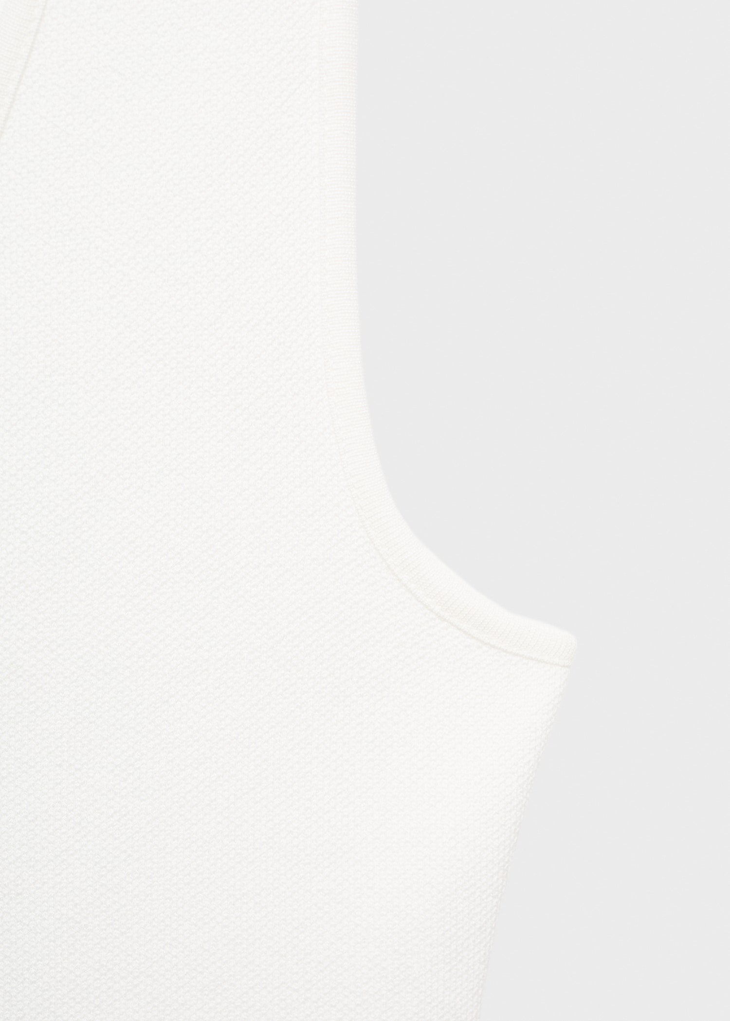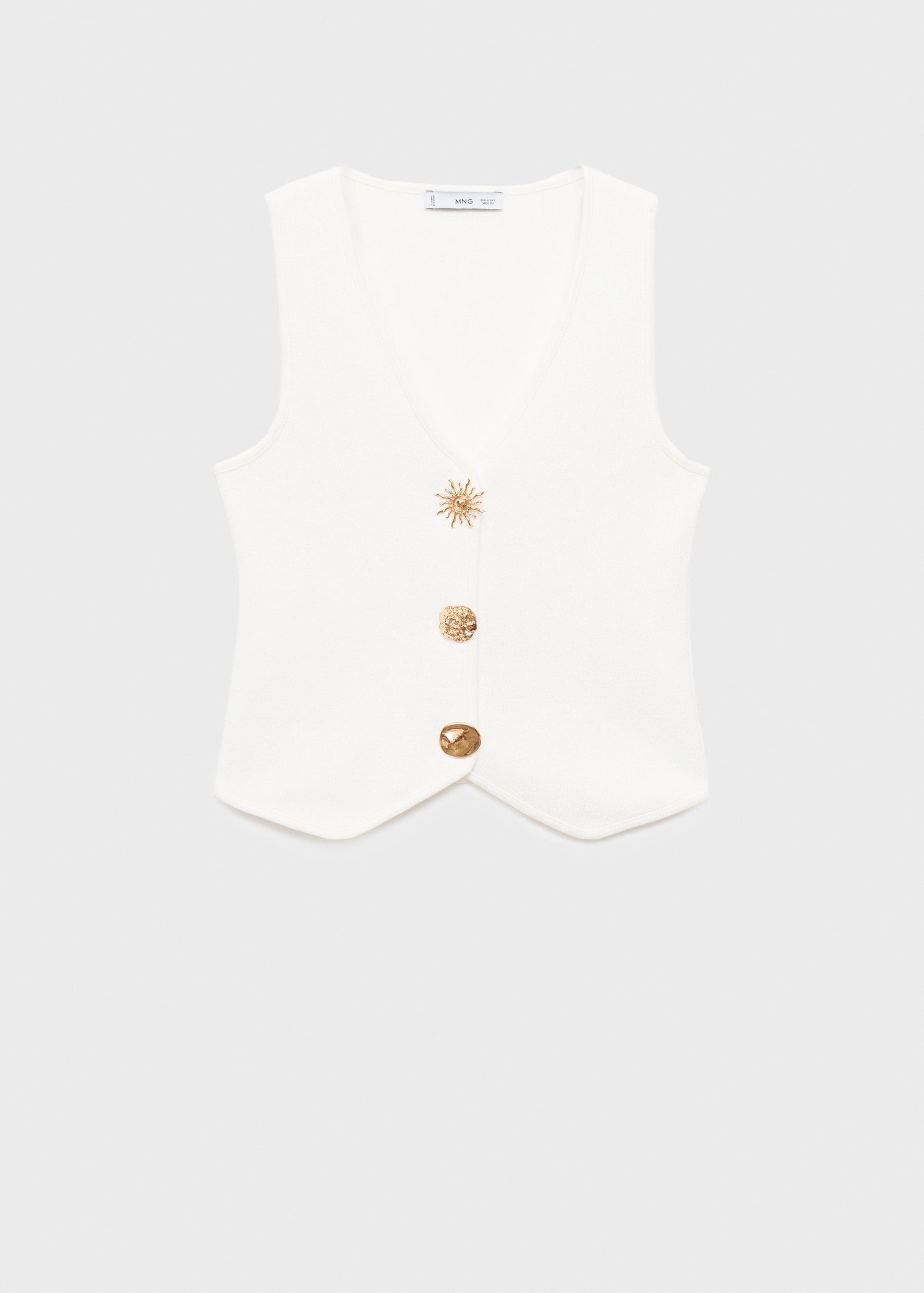 Crafted from fine-knit fabric, this straight design features an elegant V-neck and wide sleeveless straps. The front closure with jewel-effect buttons gives it a distinctive air