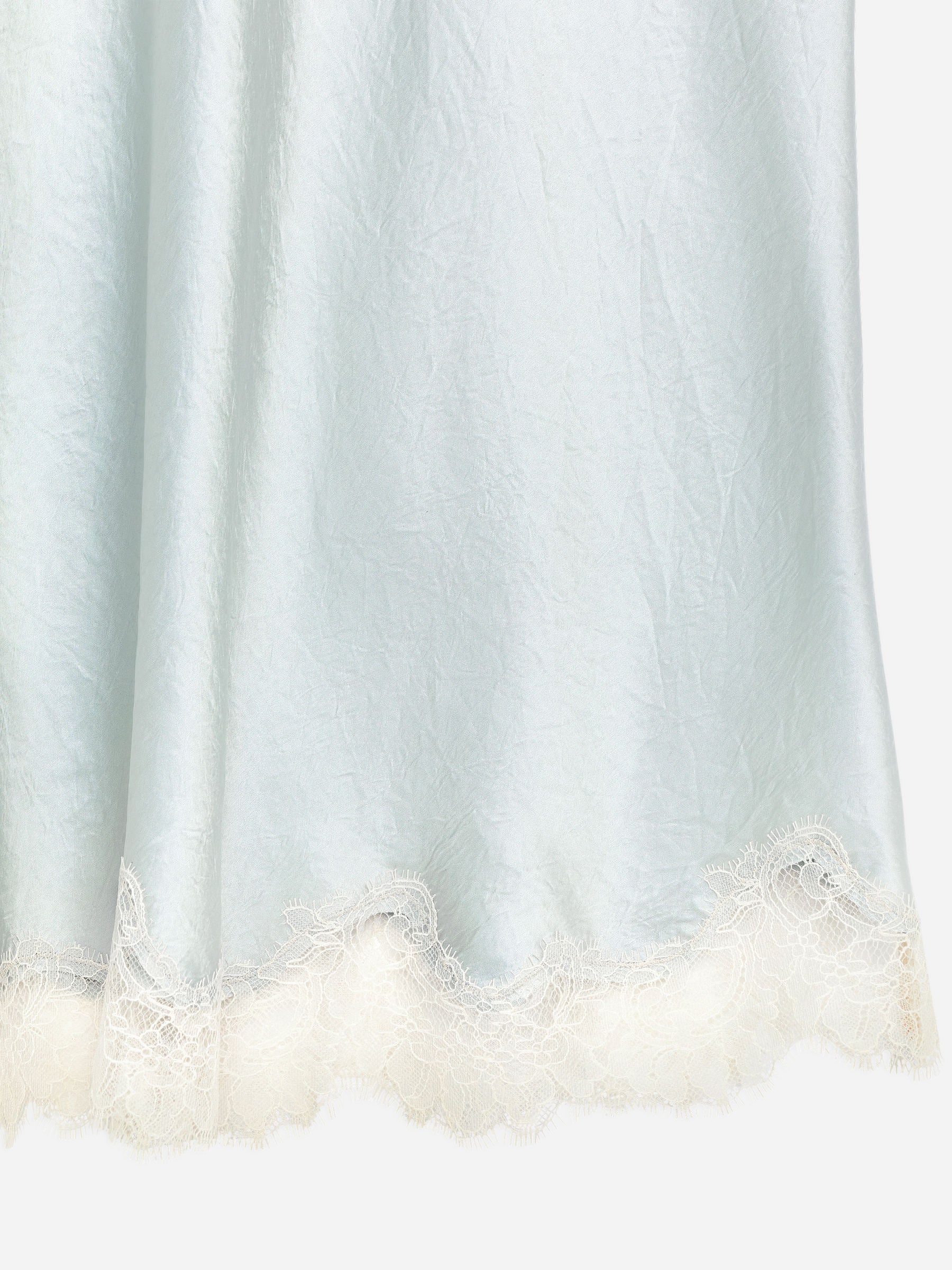 Skirt crafted from satin woven from cellulose fibres, finished with a lace trim at the hem. Regular fit.