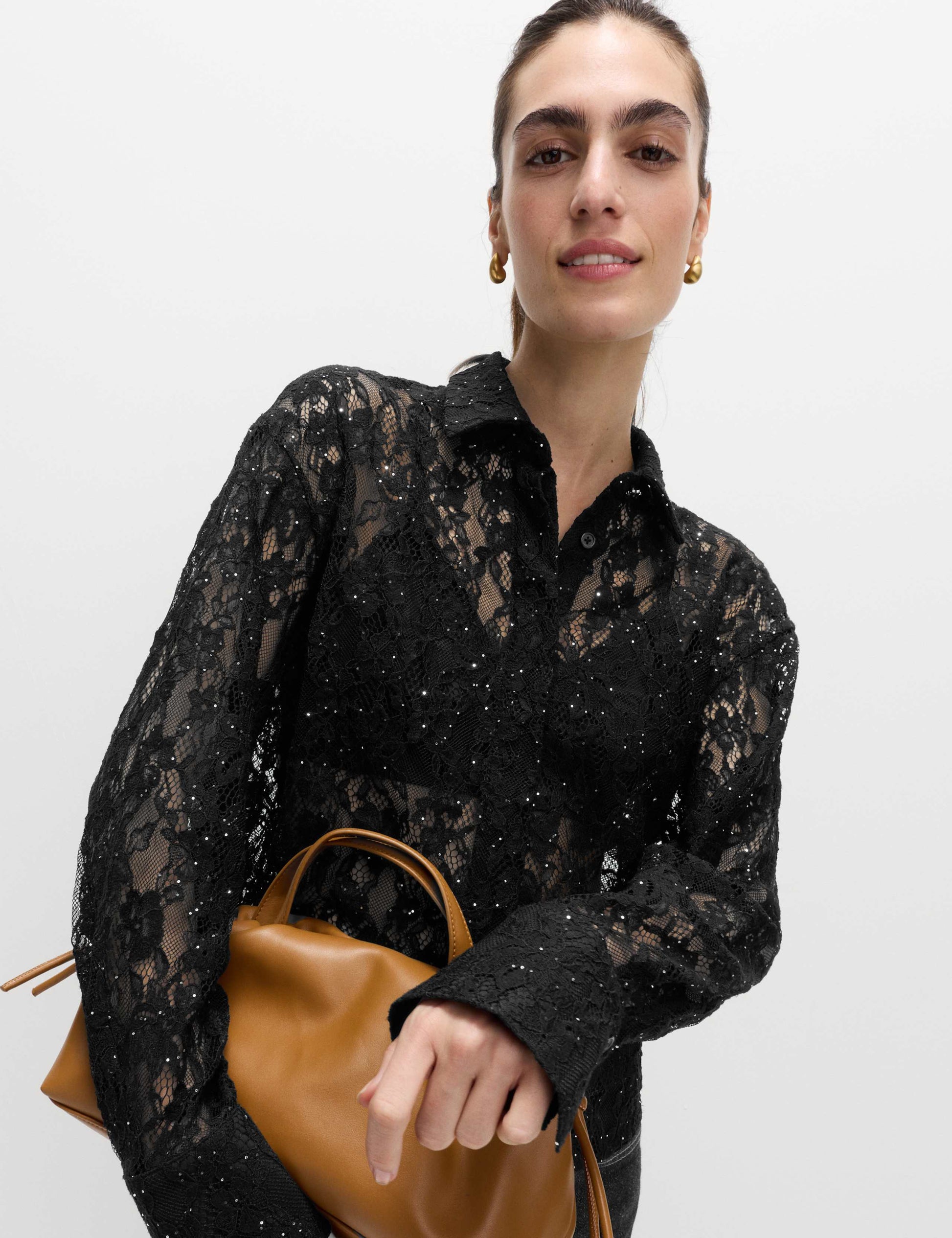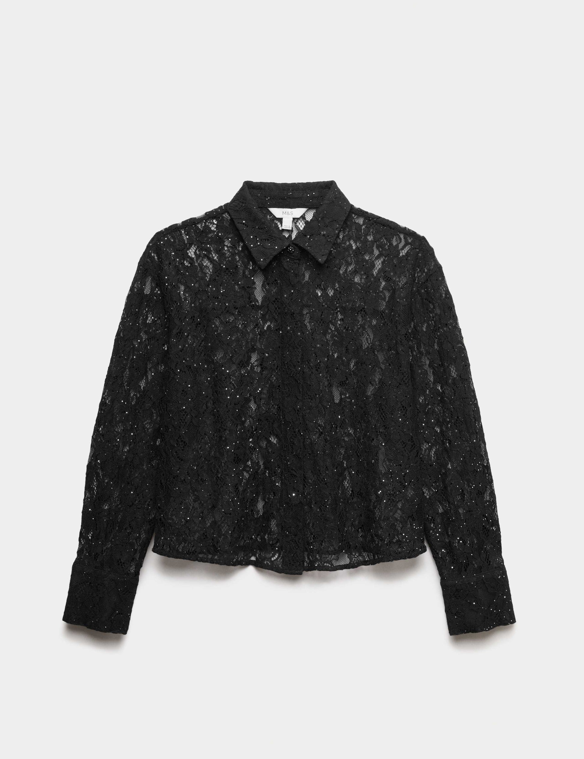Bring a romantic feel to your ensemble with this lace shirt. It's cut in a regular fit, with a neat collar and long sleeves that feature smart cuffs. A concealed button-through fastening and sparkly embellishments complete the look.
