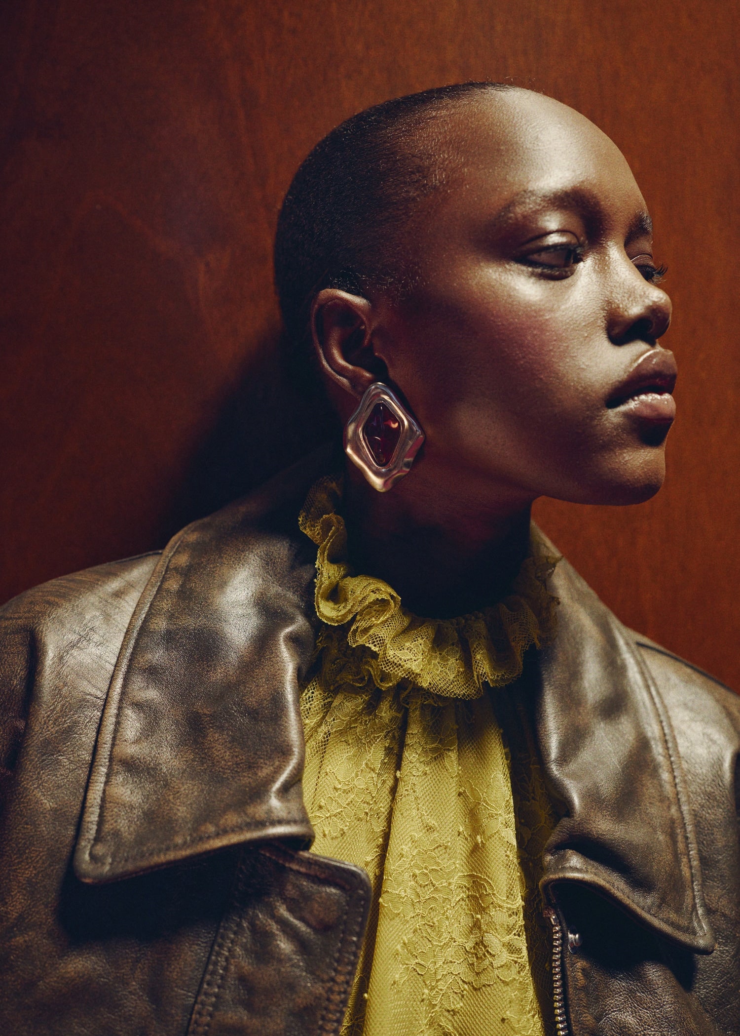 Crafted from lace fabric, this fitted design features an elegant ruff collar and is sleeveless. It includes a button closure at the neck and an inner lining for added comfort.