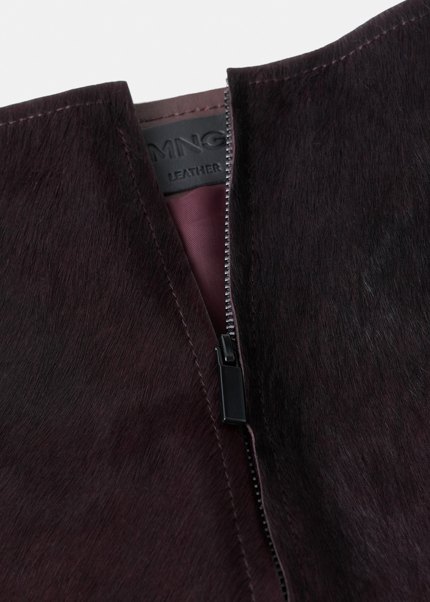 Crafted from 100% bovine leather with fur, this skirt features a mini and straight design. It includes a zip fastening at the back and an inner lining. It comes with a matching jacket. Online Exclusive