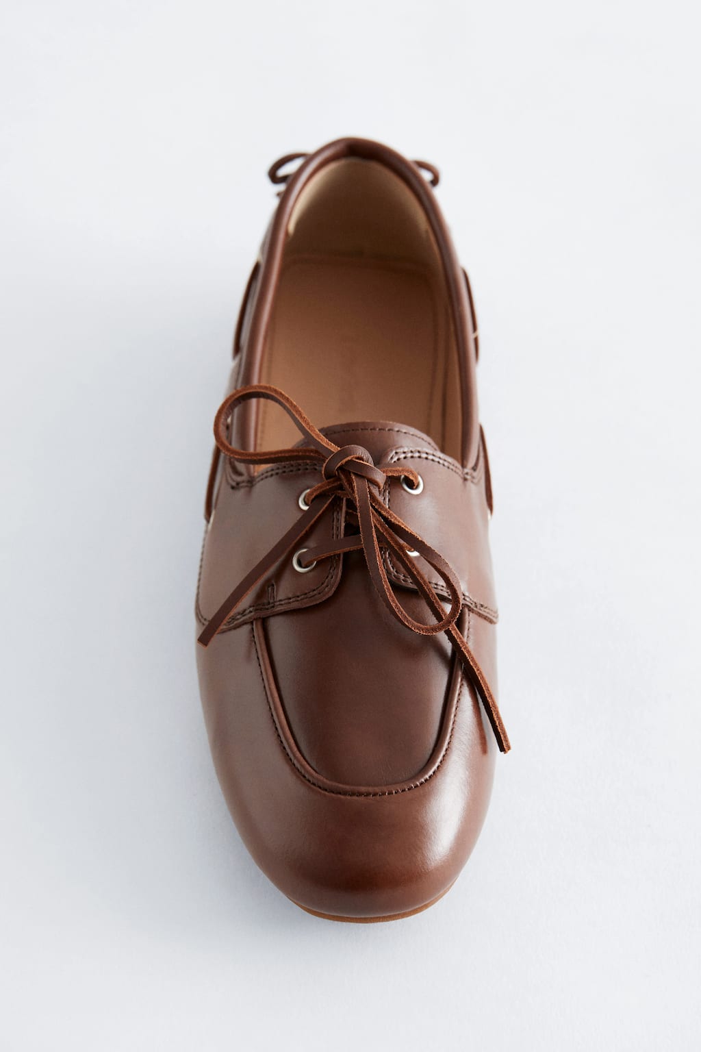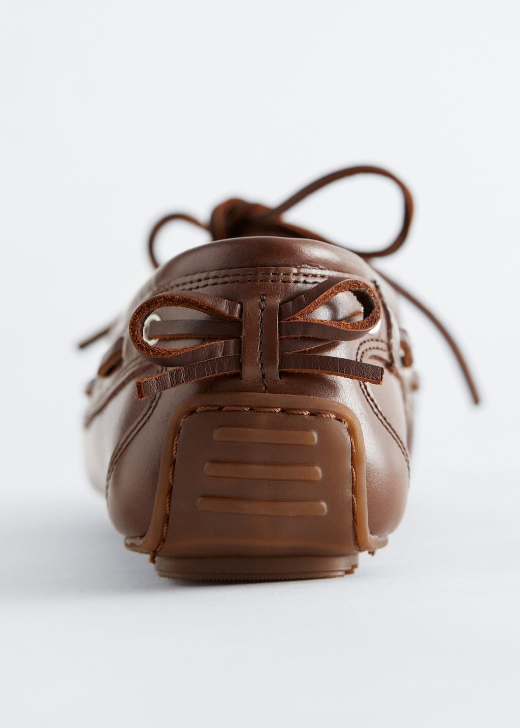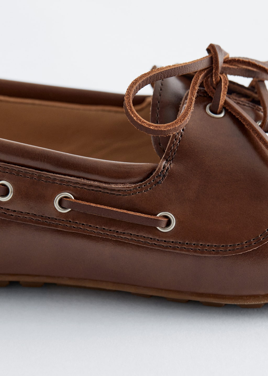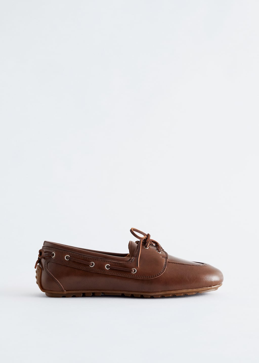 Crafted in Portugal from supple leather, these boat shoes feature rounded toes, traditional leather laces at the front, along with side leather lacing that wraps around the heel and ties at the back. Patterned soles and a heel guard provide enhanced grip.