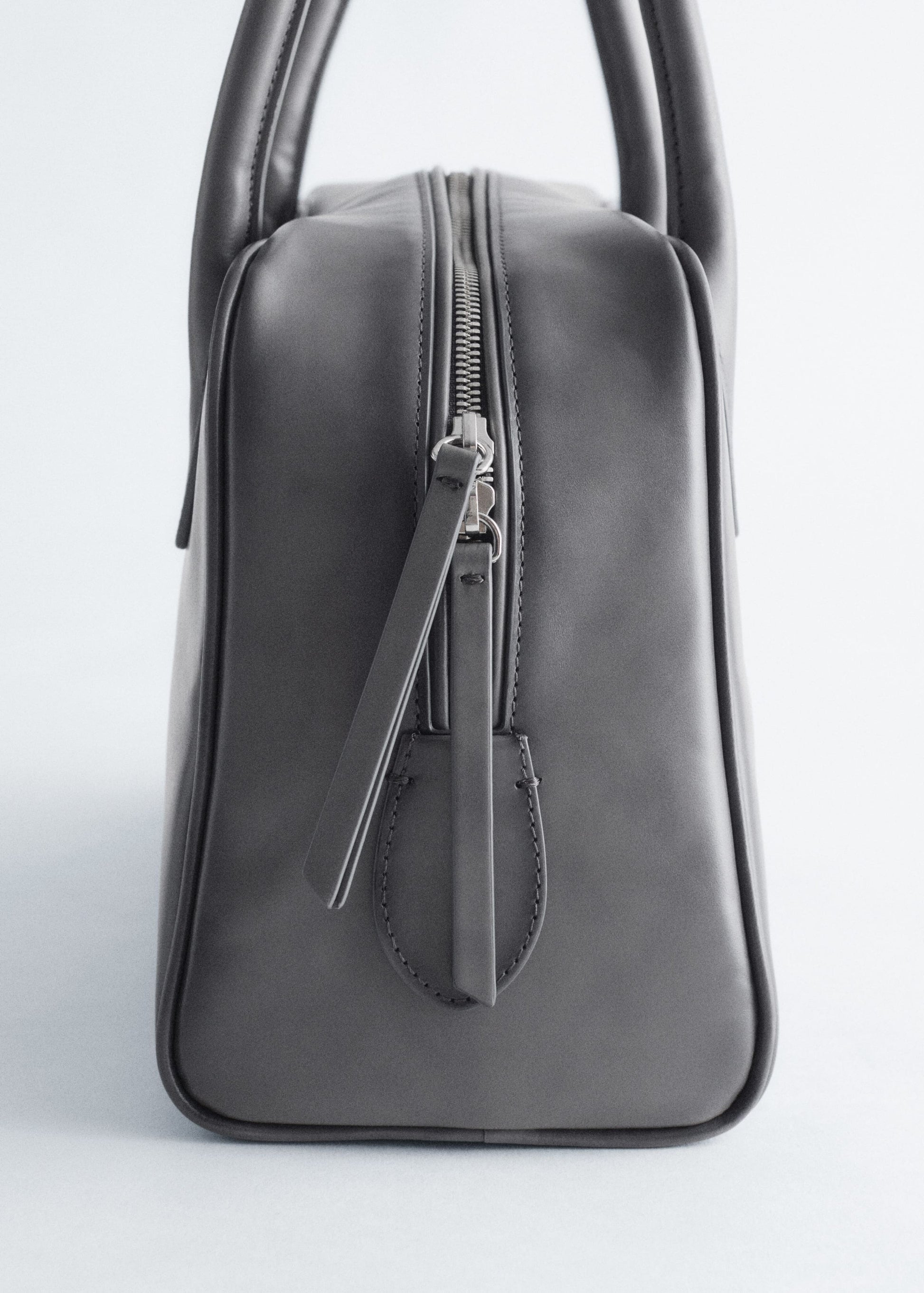 Crafted from soft leather, this shoulder bag draws inspiration from vintage bowling bags. It features short tubular handles with large ends, a flat, sturdy base and a curved, low-line silhouette. The bag is finished with a two-way zip at the top and includes an inner pocket for storing smaller belongings.